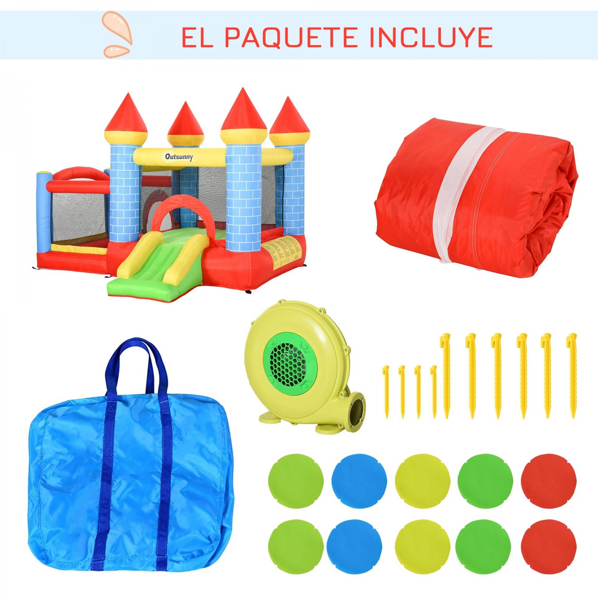 - - MÚLTIPLES JUEGOS: El hinchable está compuesto por un tobogán para entrar y salir del castillo de forma más divertida, 1 zona para saltar y un espacio cerrado con una canasta que puede usarse como piscina de bolas (BOLAS NO INCLUIDAS)