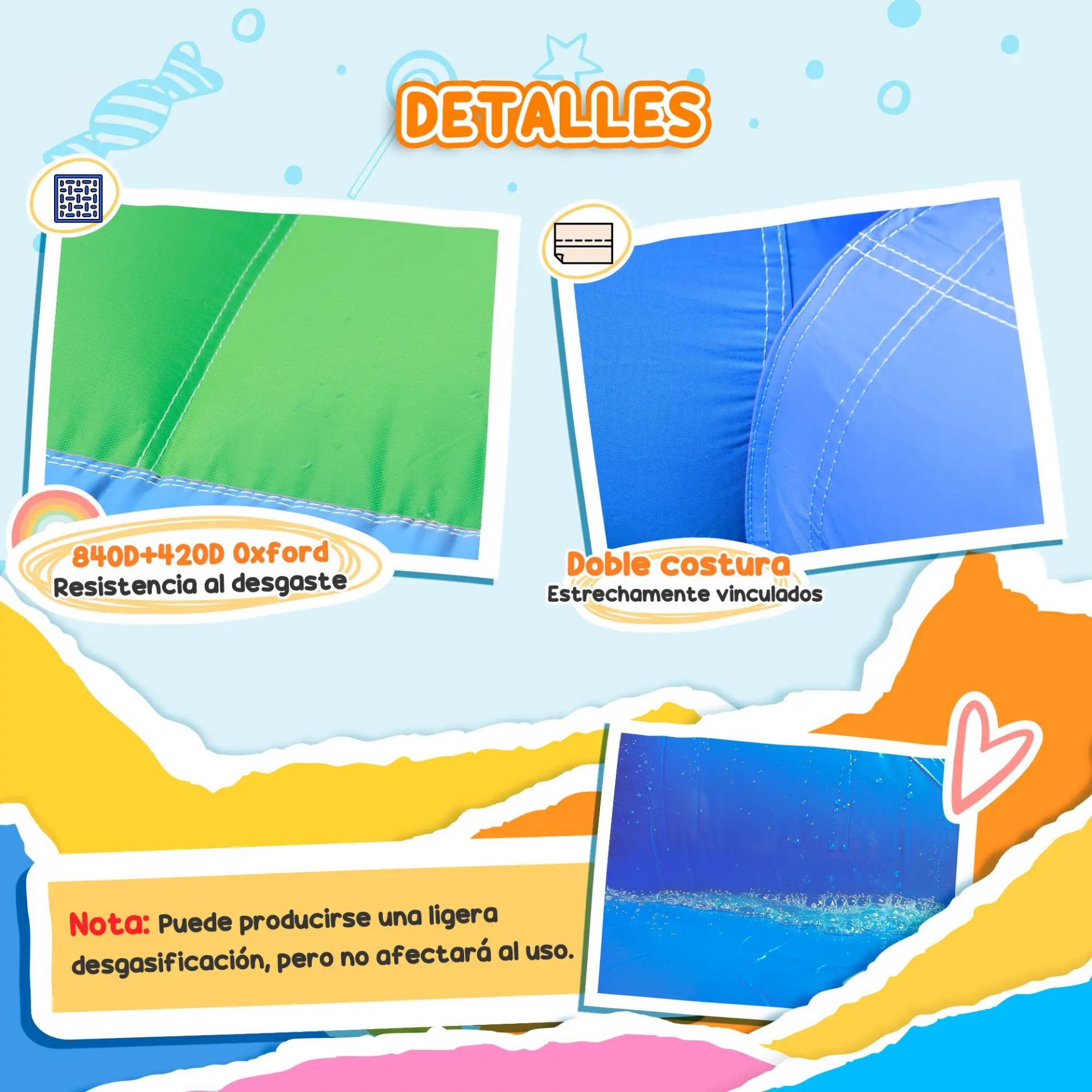 - - DISEÑADO PARA JUGAR: Fabricado con resistente tela Oxford 420D+840D, el castillo hinchable acuático soporta saltos, juegos y salpicaduras. Sus muros de malla y estacas de anclaje garantizan estabilidad y seguridad