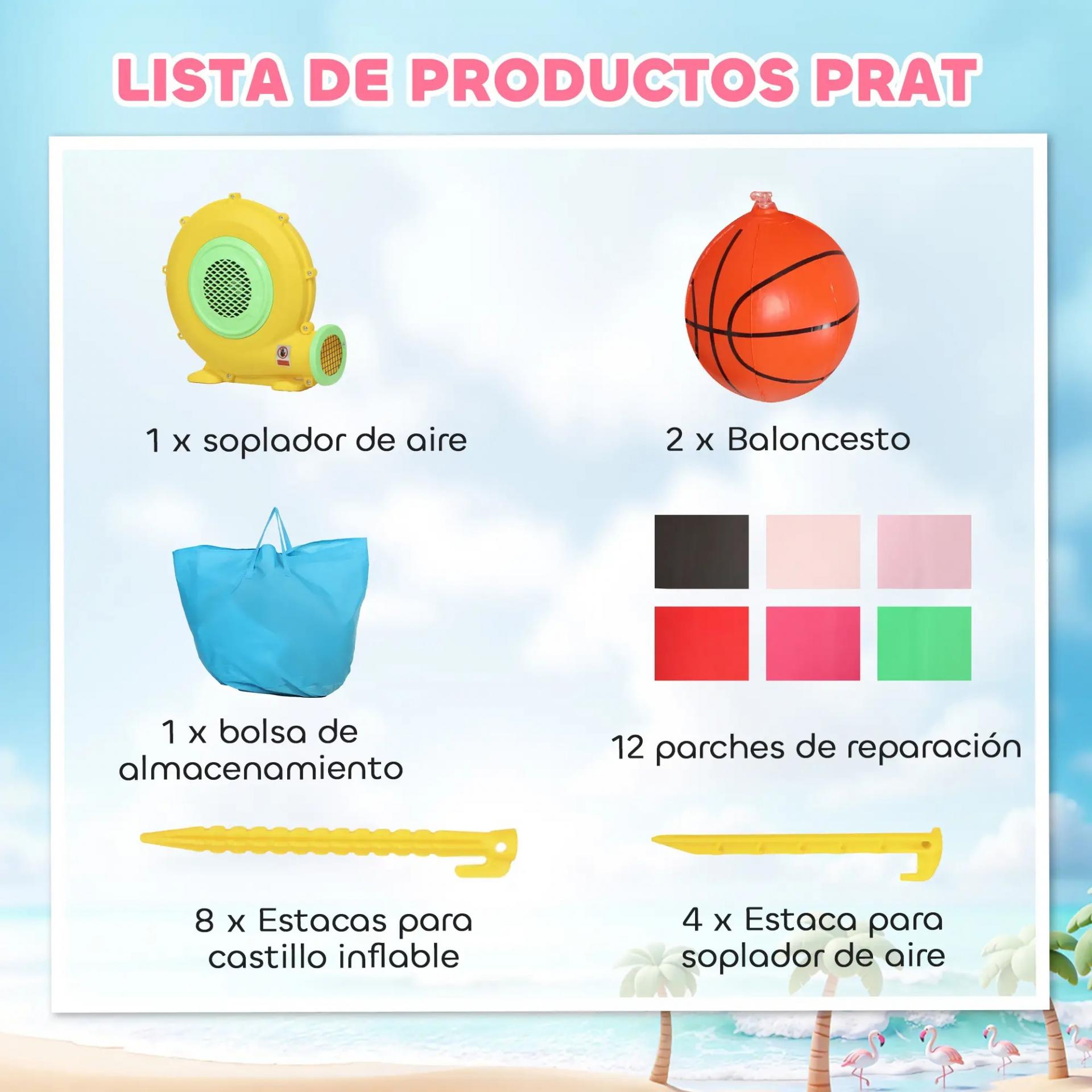 - CASTILLO HINCHABLE TEMÁTICO DE FLAMENCO: Un espacio de juego lleno de color con zona de salto, tobogán, piscina de pelotas y aro, diseñado para que los tres niños de 3 a 8 años se diviertan sin parar. Ideal para sorprender desde el primer vistazo