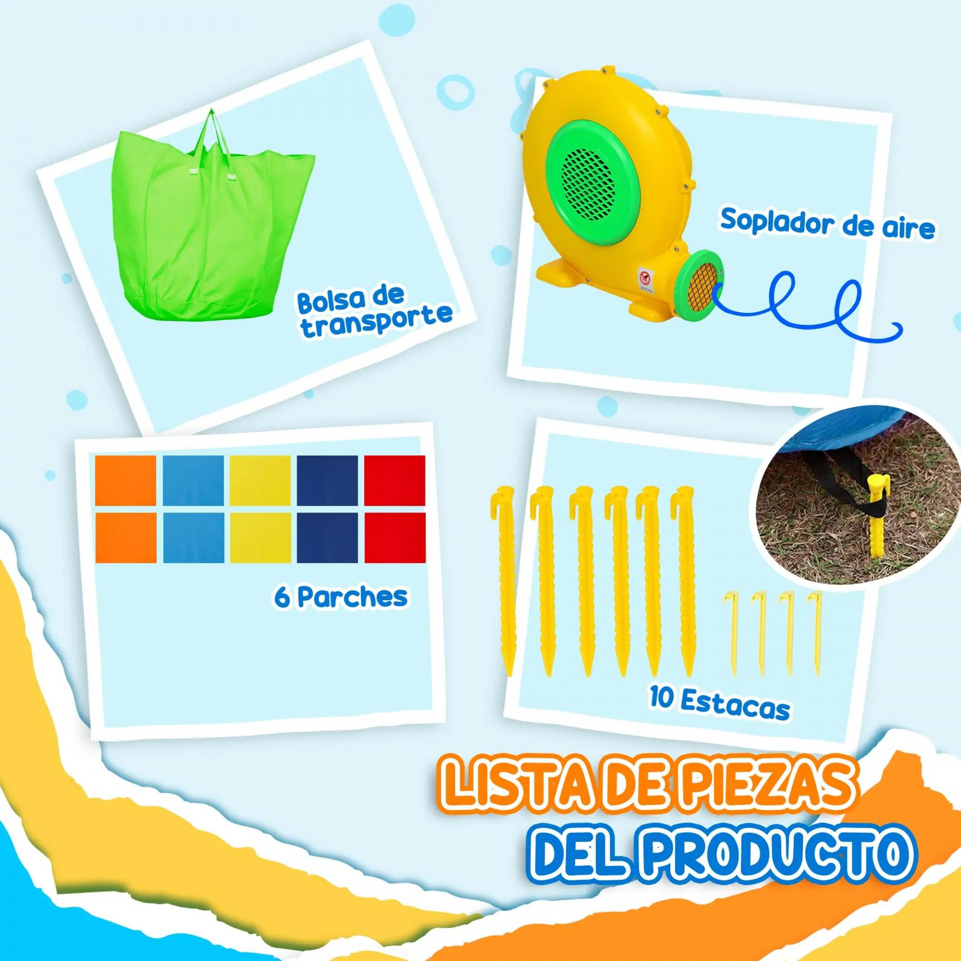 - - INFLADO RÁPIDO EN 2 MINUTOS: Gracias al inflador de 370W incluido, este castillo inflable estará listo en solo dos minutos. Cumple con estándares de seguridad, garantizando diversión sin preocupaciones
