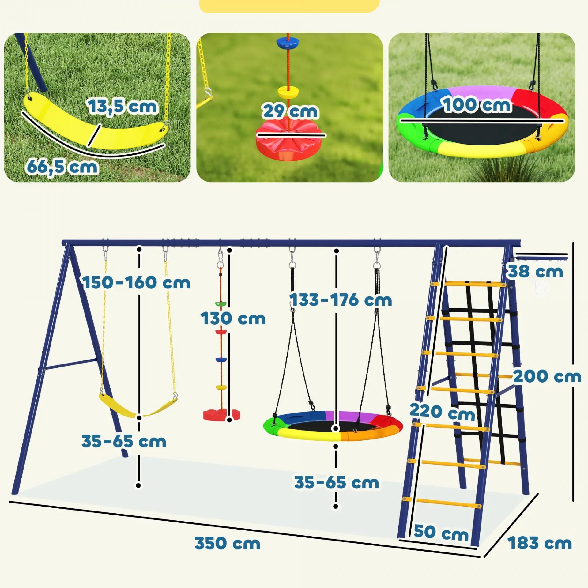 Conjunto de Columpios 6 en 1 para Niños con Nido Escalera Red para Escalar Canasta 350x183x200 cm Multicolor