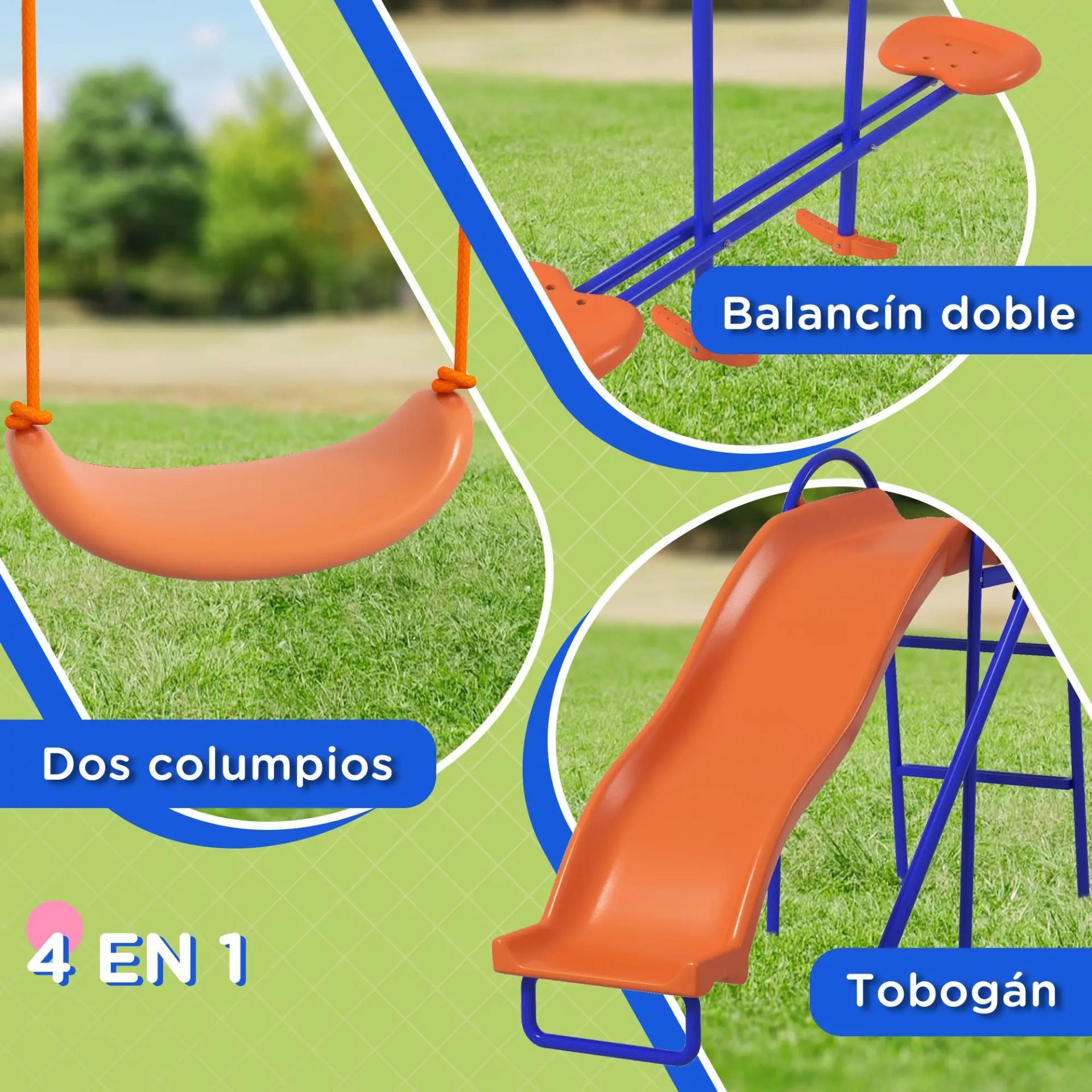 Columpio Infantil 4 en 1 Columpio para Niños con 2 Columpios Individuales 1 Columpio del Planeador 1 Tobogán Multicolor