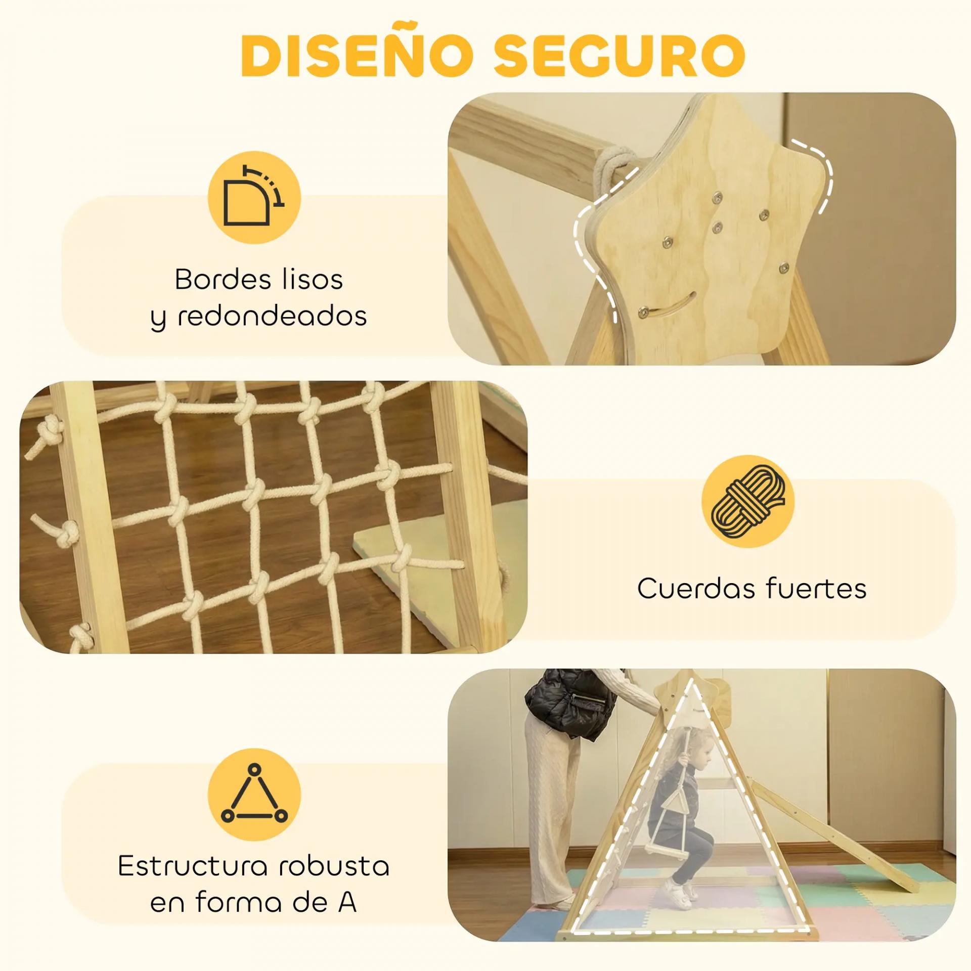 - - CONSTRUCCIÓN ESTABLE Y SEGURA: La estructura de escalada en forma de A está fabricada en madera maciza y contrachapado reforzado, soporta hasta 50 kg y garantiza un espacio de juego firme y confiable, ideal para que los pequeños jueguen con tranquilidad