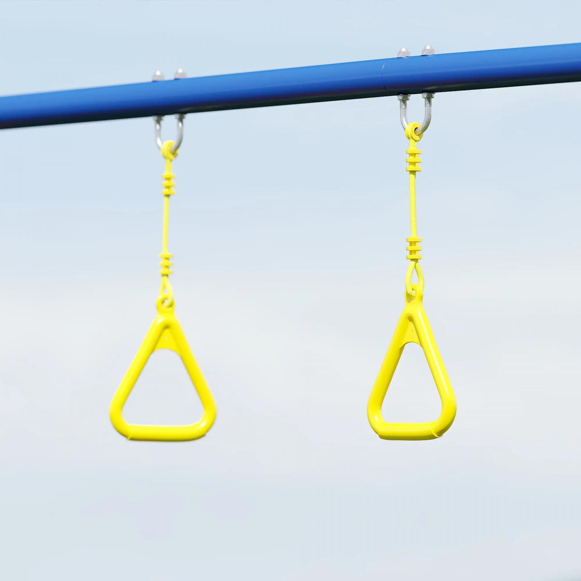 - - DIVERSIÓN 3 EN 1: Columpio infantil con asiento clásico, columpio para pararse y anillas, permitiendo que tres niños jueguen juntos, mejorando coordinación, fuerza y confianza al disfrutar al aire libre