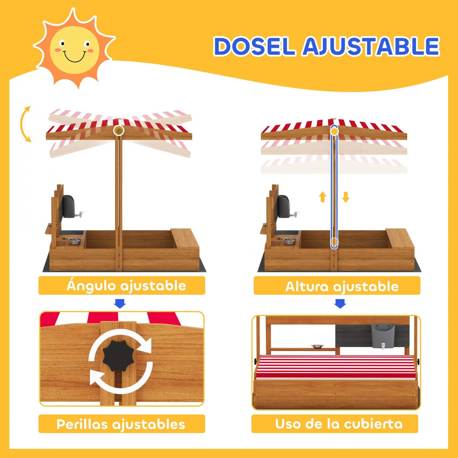- - TOLDO AJUSTABLE: El toldo de este arenero es ajustable en altura, desde ambos lados. Para que tus hijos puedan jugar, aunque haga un poco de viento, solo caigan 4 gotitas de agua. La altura del toldo se puede ajustar al mínimo para cubrir el arenero y mantenerlo más protegido y limpio cuando no se usa