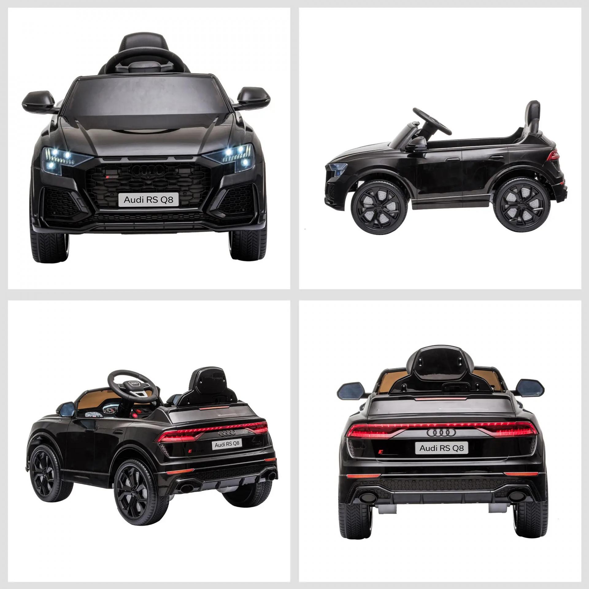 Coche Eléctrico Infantil +3 Años Licencia Audi RS Q8 con Batería 6V 2 Motores Mando a Distancia Música Bocina y Luces Velocidad Máx. 3km/h 101x62x51 cm Negro