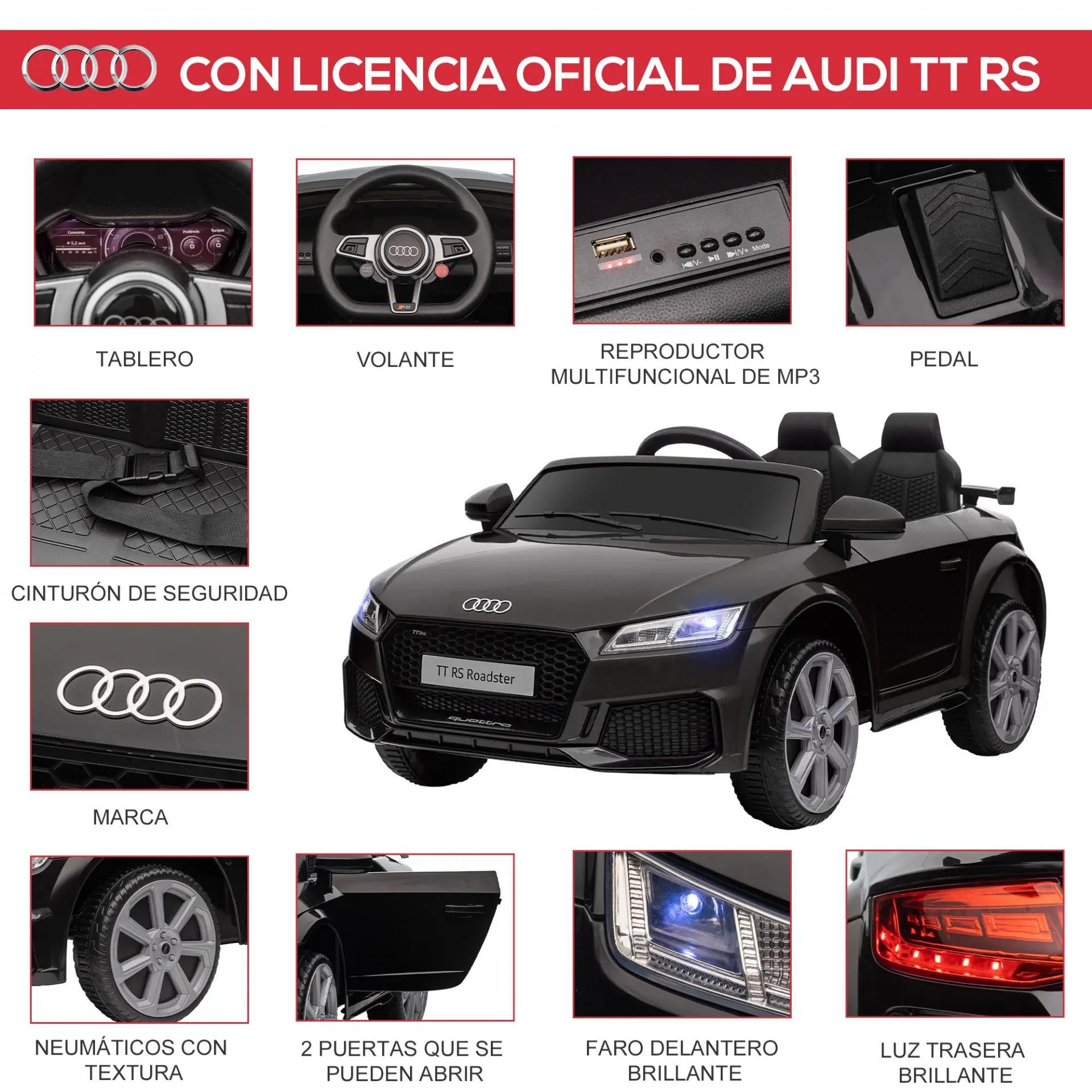 Coche Eléctrico para Niños de 3+ Años Audi TT Eléctrico Infantil 12V con Velocidad 3 km/h Mando a Distancia 102x60x44 cm