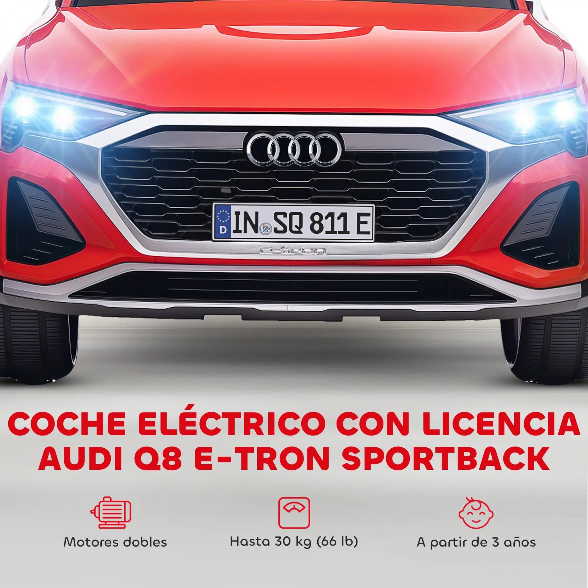 Coche Eléctrico para Niños Audi Q8 etron sportback con Batería 12V Mando a Distancia Faros Bocina y Música Rojo