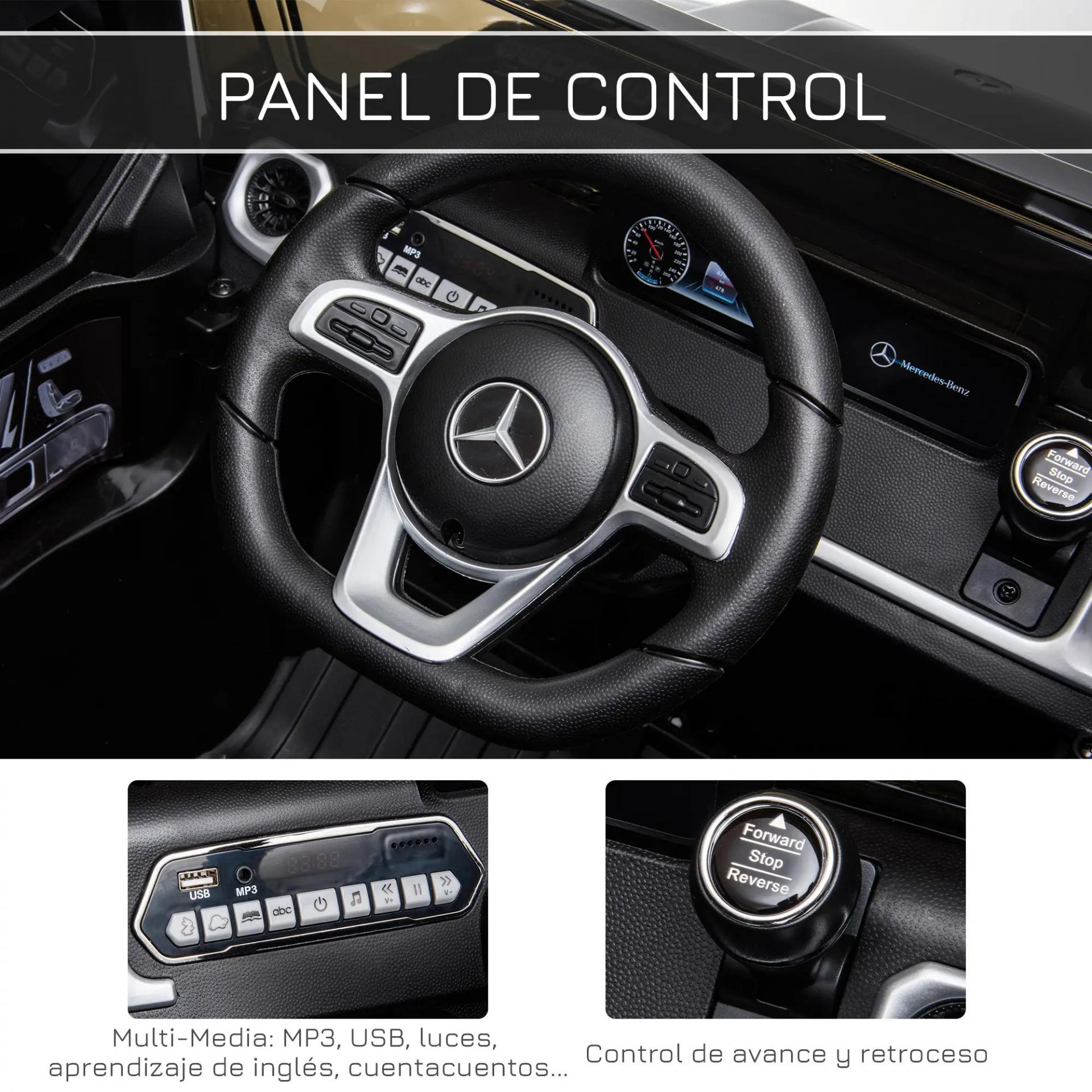 - - COCHE ELÉCTRICO PARA NIÑOS MERCEDES BENZ G500 CON LICENCIA OFICIAL: Este coche eléctrico para niños, con licencia oficial de Mercedes Benz G500, presenta un diseño realista con faros operativos, indicadores de tablero iluminados y un volante auténtico. Los niños pueden disfrutar de emocionantes paseos a velocidades de 3-5 km/h
