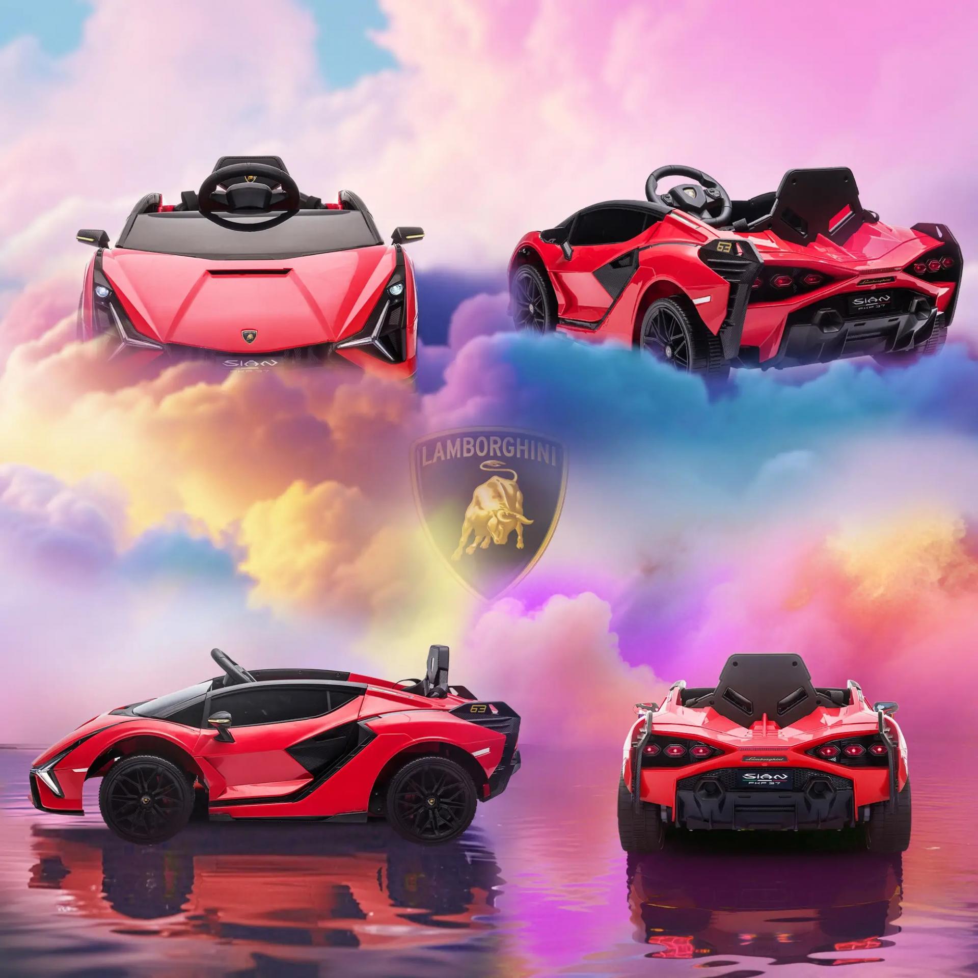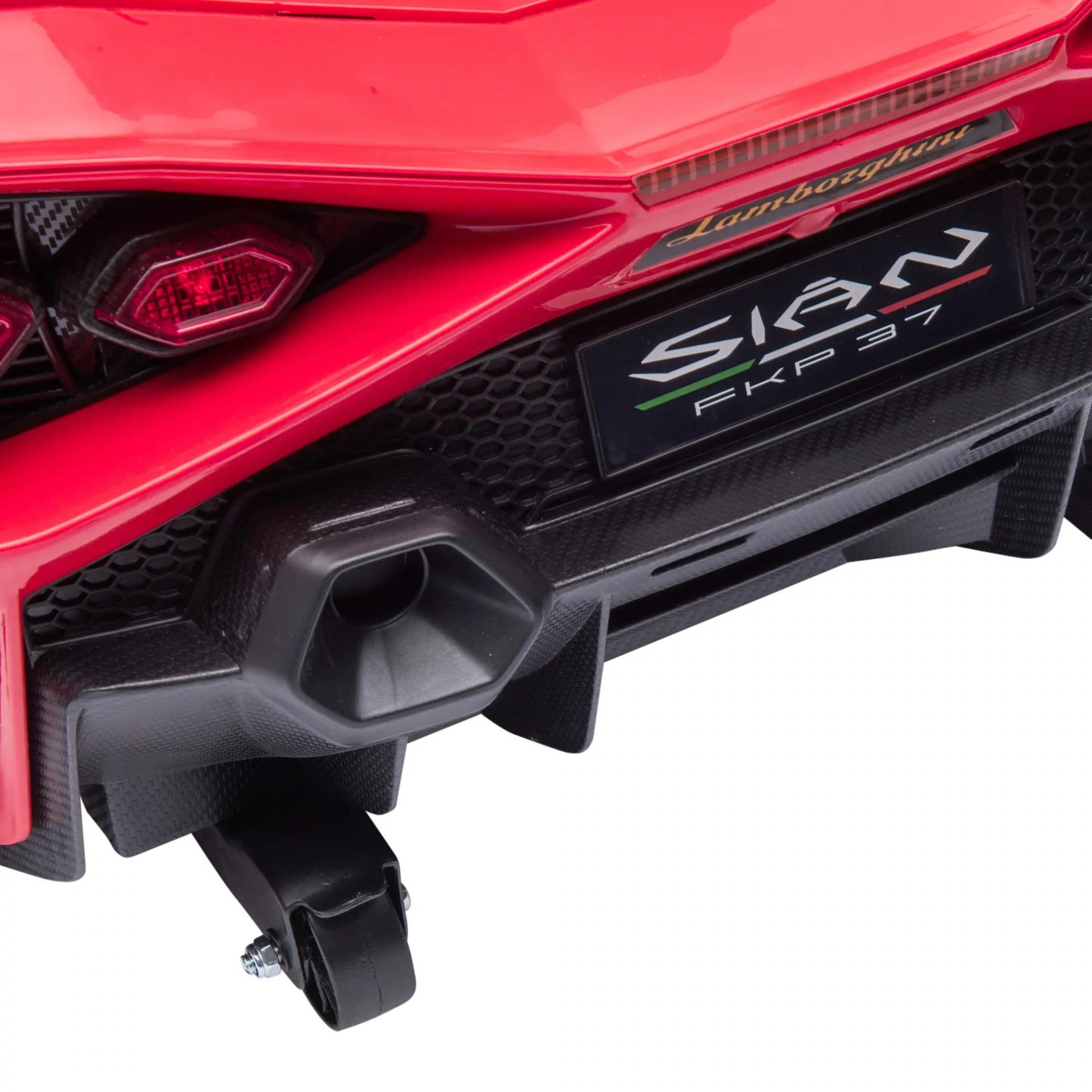Coche Eléctrico para Niños de +3 Años Lamborghini SIAN Coche de Batería 12V con Mando a Distancia Apertura de Puerta Música MP3 USB y Faros 3-5 km/h 108x62x40 cm Rojo