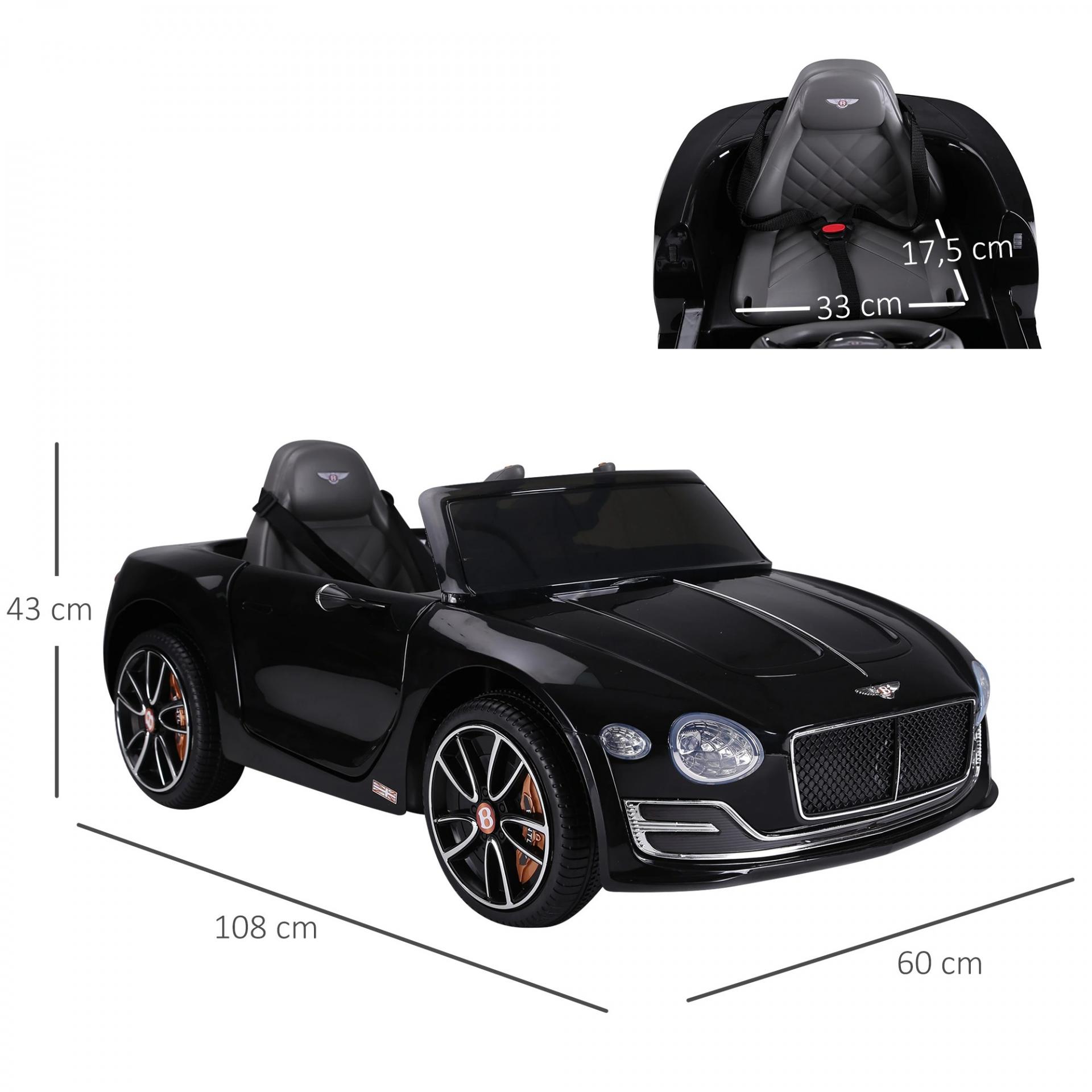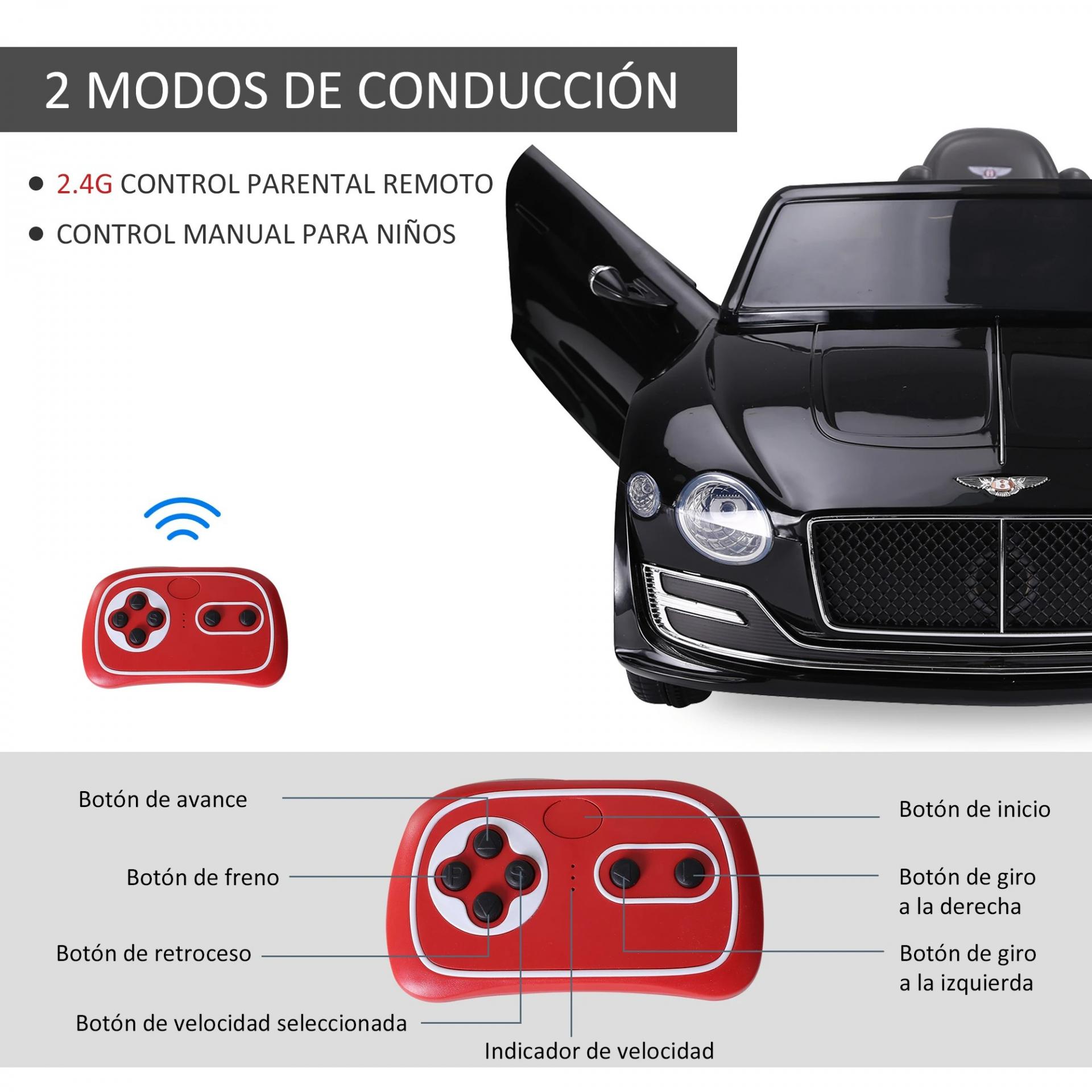 Coche Eléctrico para Niños Bentley GT Coche de Batería para Niños de +3 Años Velocidad 2,5-5 km/h 108x60x43 cm Negro