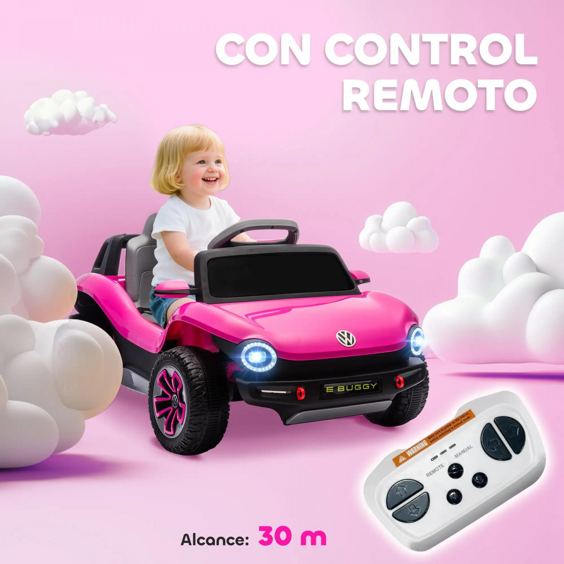 Coche Eléctrico para Niños de +3 Años Volkswagen E-Buggy 12V con Mando a Distancia 2,4 G Ruedas con Suspensión Rosa