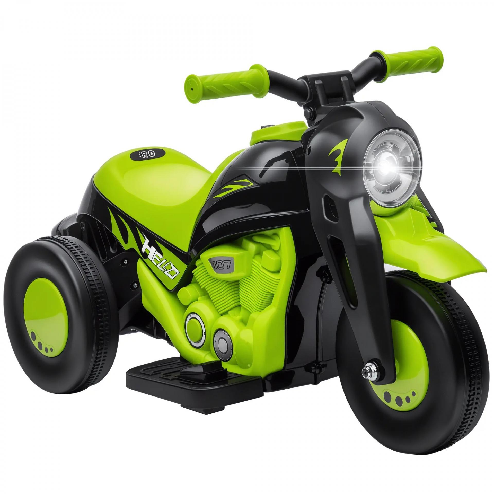 Moto Eléctrica para Niños de +2 Años con Función de Soplar Burbujas Faros Música Velocidad 3 km/h Carga 30 kg Verde