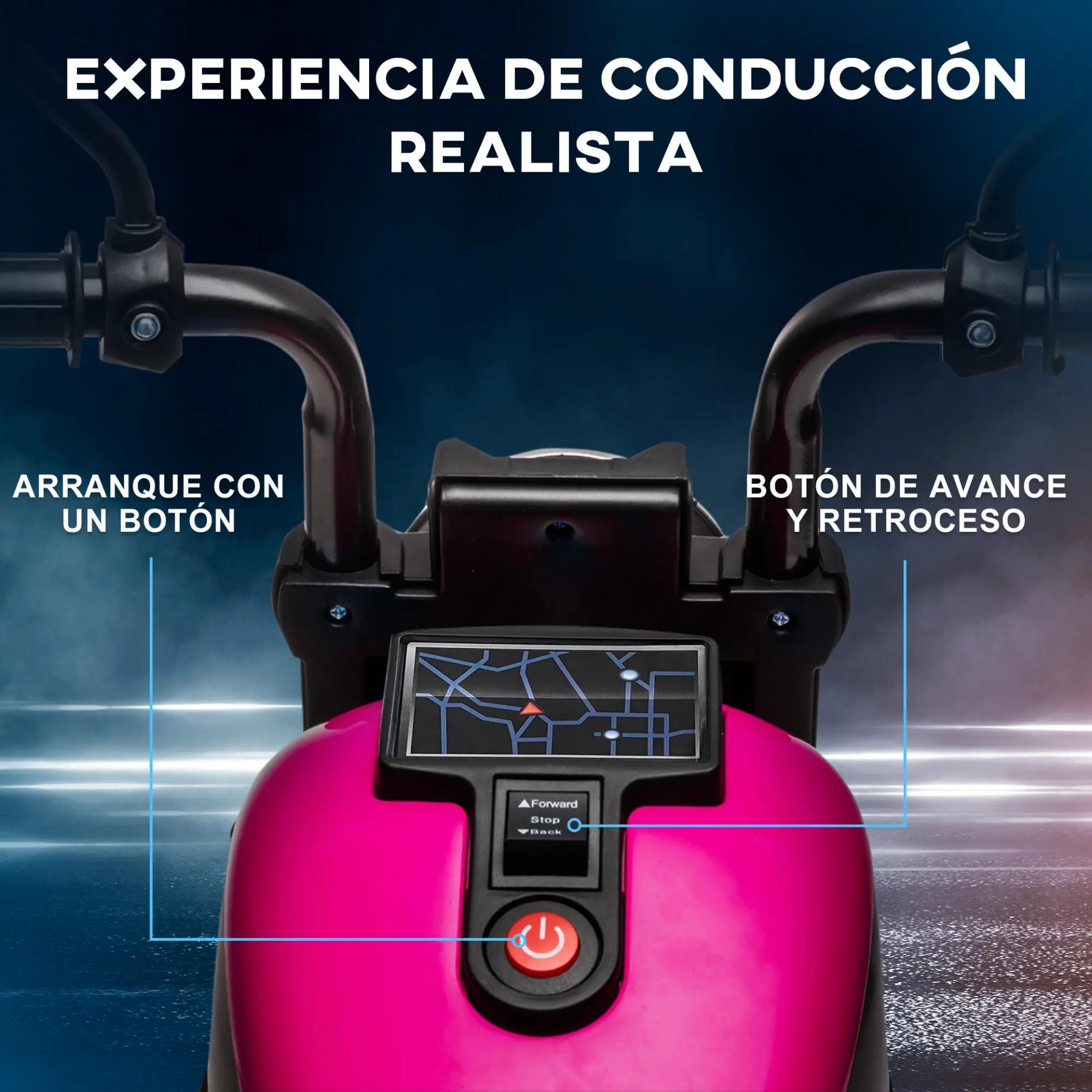 - MOTOCICLETA ELÉCTRICA PARA NIÑOS: Esta moto eléctrica para niños tipo chopper combina arranque por botón, pedal de conducción y luces funcionales para ofrecer una experiencia realista, segura y divertida desde el primer paseo