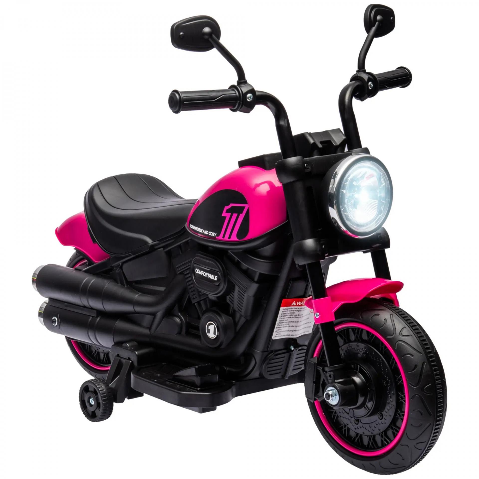 Moto Eléctrica para Niños de 18-36 Meses con Batería 6V Faro y Ruedas Auxiliares Desmontables Rosa