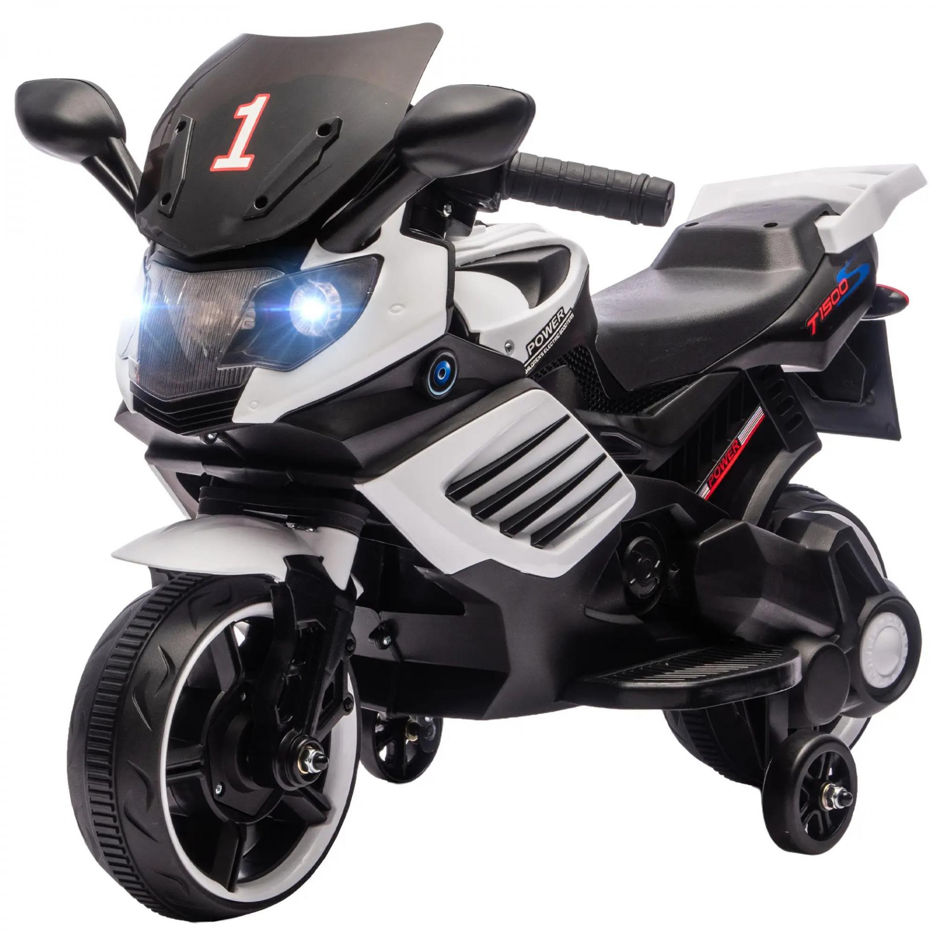 Moto Eléctrica para Niños 6V con Ruedas de Apoyo Música Faro para Niños de 18-36 Mesas Blanco