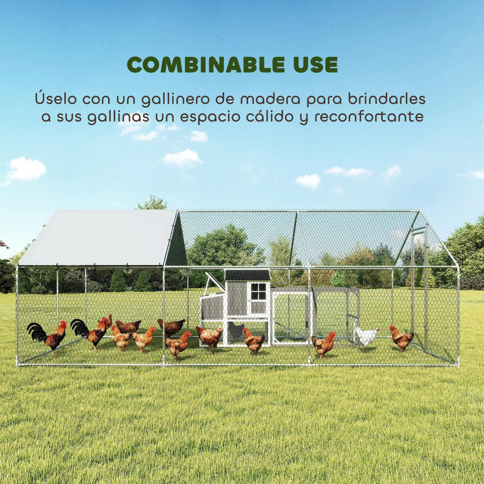 - - AMPLIO ESPACIO: Con 15,3 m², este gallinero grande ofrece espacio para 15-24 gallinas, conejos o patos, permitiendo que se muevan libremente y se mantengan activas. Ideal para combinar con una casita de madera y crear un entorno perfecto para tus aves