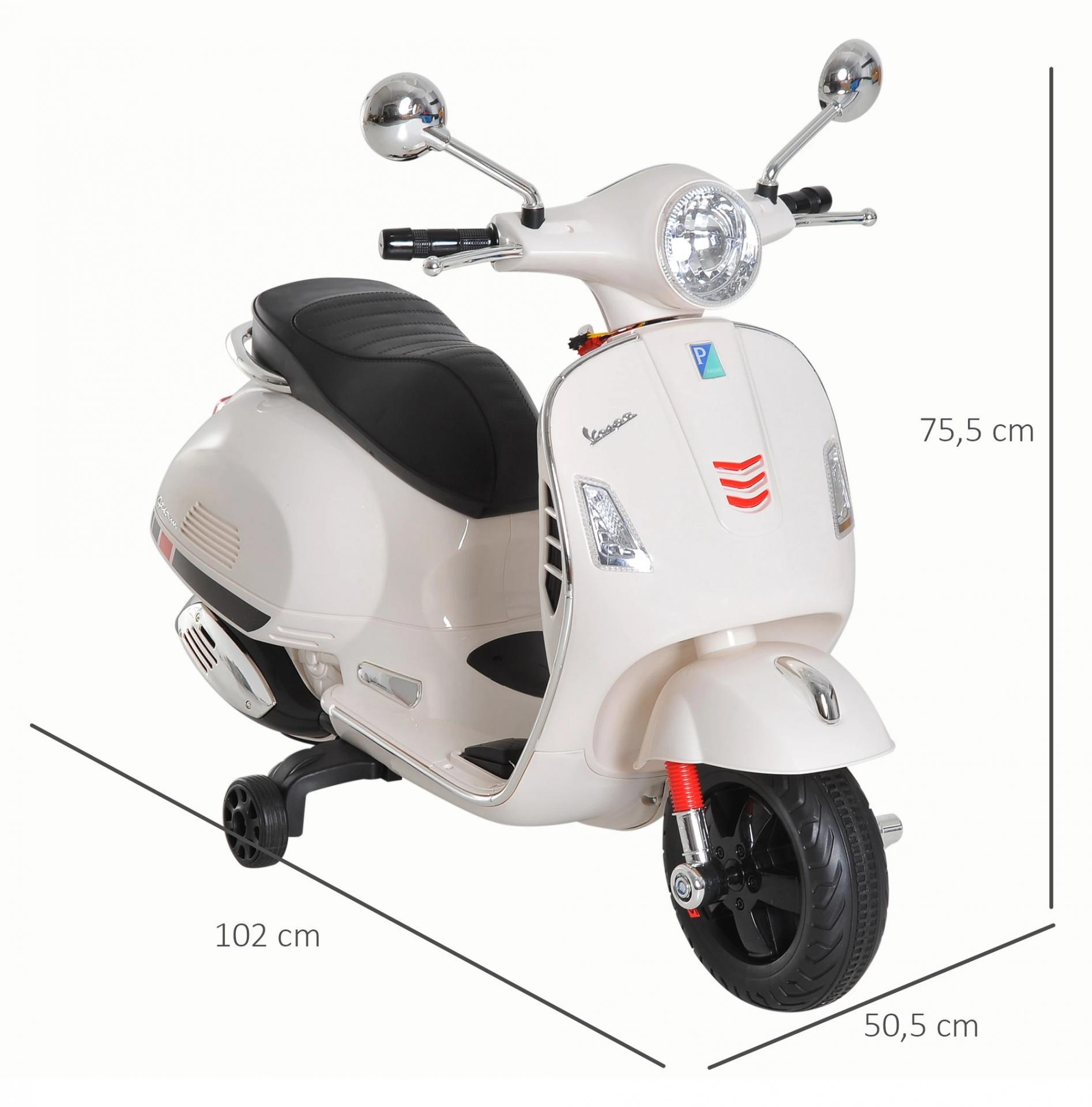 Moto Eléctrica para Niños de 3-6 Años con Licencia VESPA Moto de Batería para Niños con Música Velocidad 2-3 km/h y Bocina Carga 25 kg Blanco