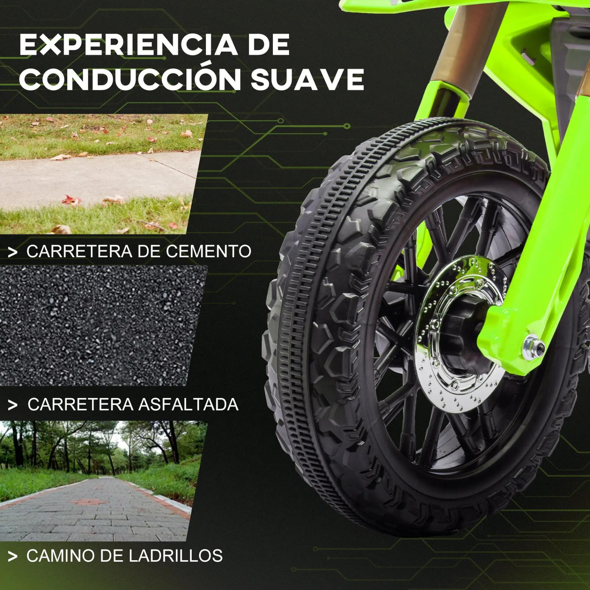 Moto Eléctrica para Niños de +3 Años Moto a Batería para Niños 12V con Ruedas de Auxiliar y Bocina Carga 30 kg Verde