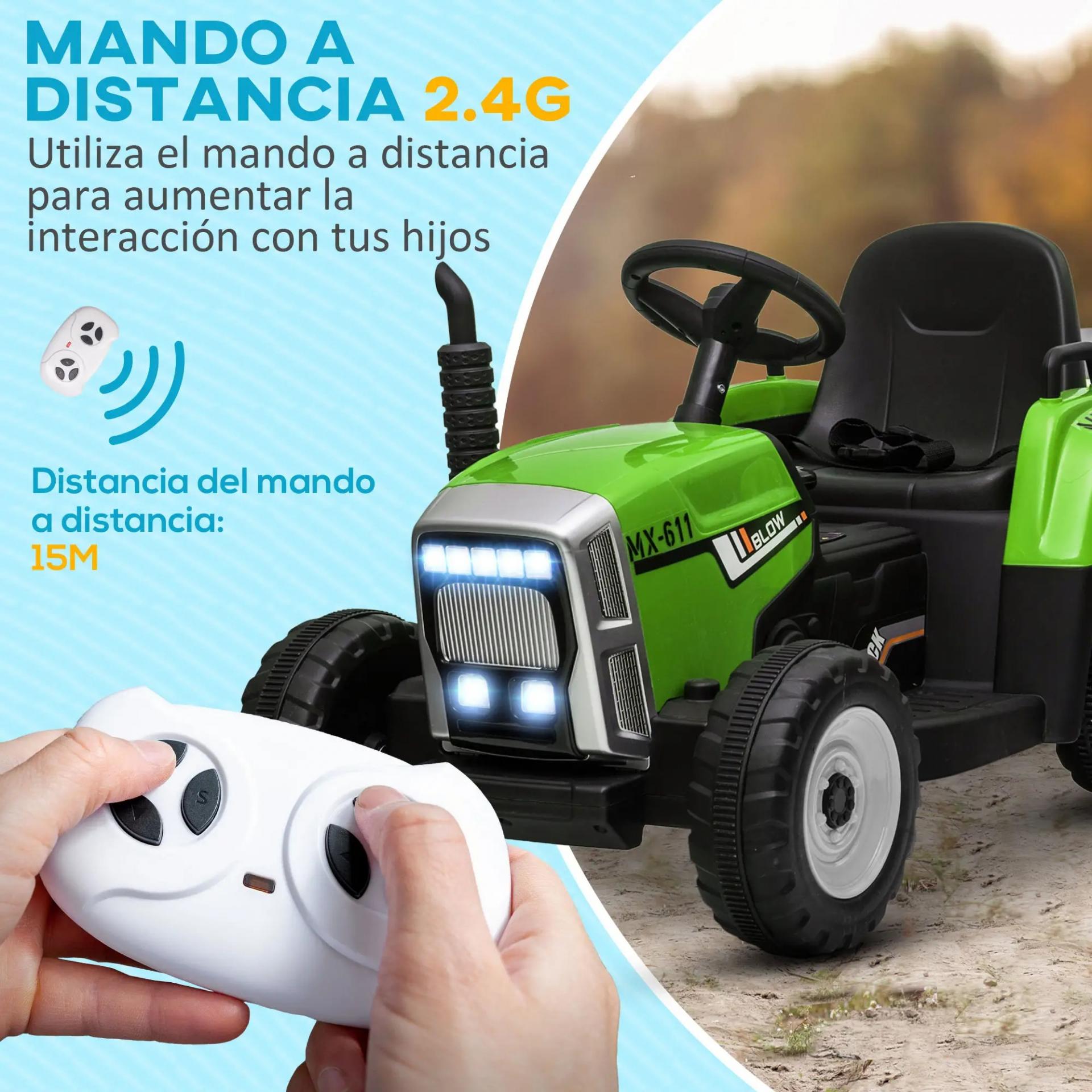 - TRACTOR ELÉCTRICO PARA NIÑOS: Este tractor eléctrico para niños cuenta con un remolque desmontable en la parte trasera, ideal para que los más pequeños lleven algunos juguetes durante el paseo