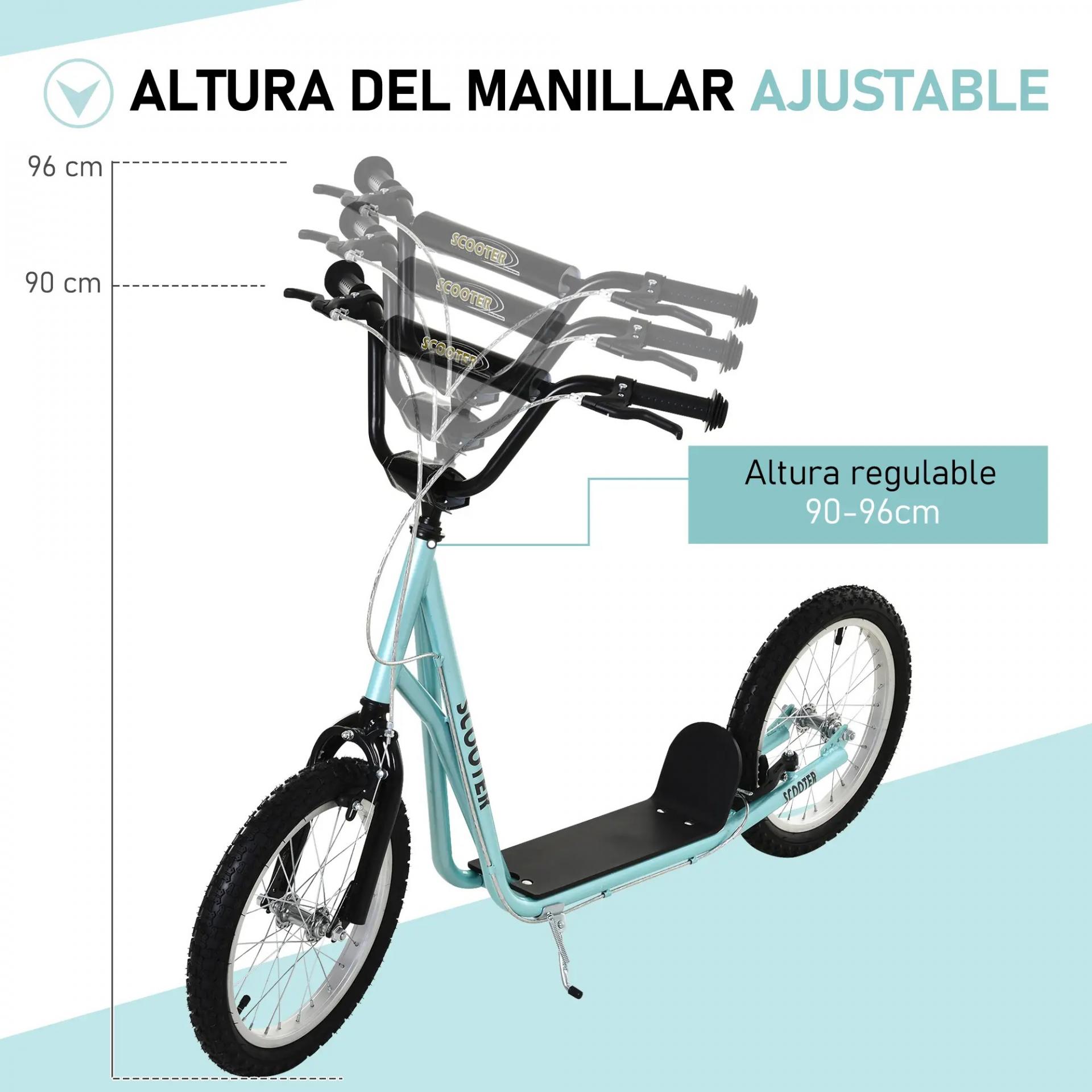 Patinete Infantil Patinete con 2 Ruedas Manillar Ajustable en Altura y Doble Freno Carga 100 kg 139x58x90-96 cm Azul