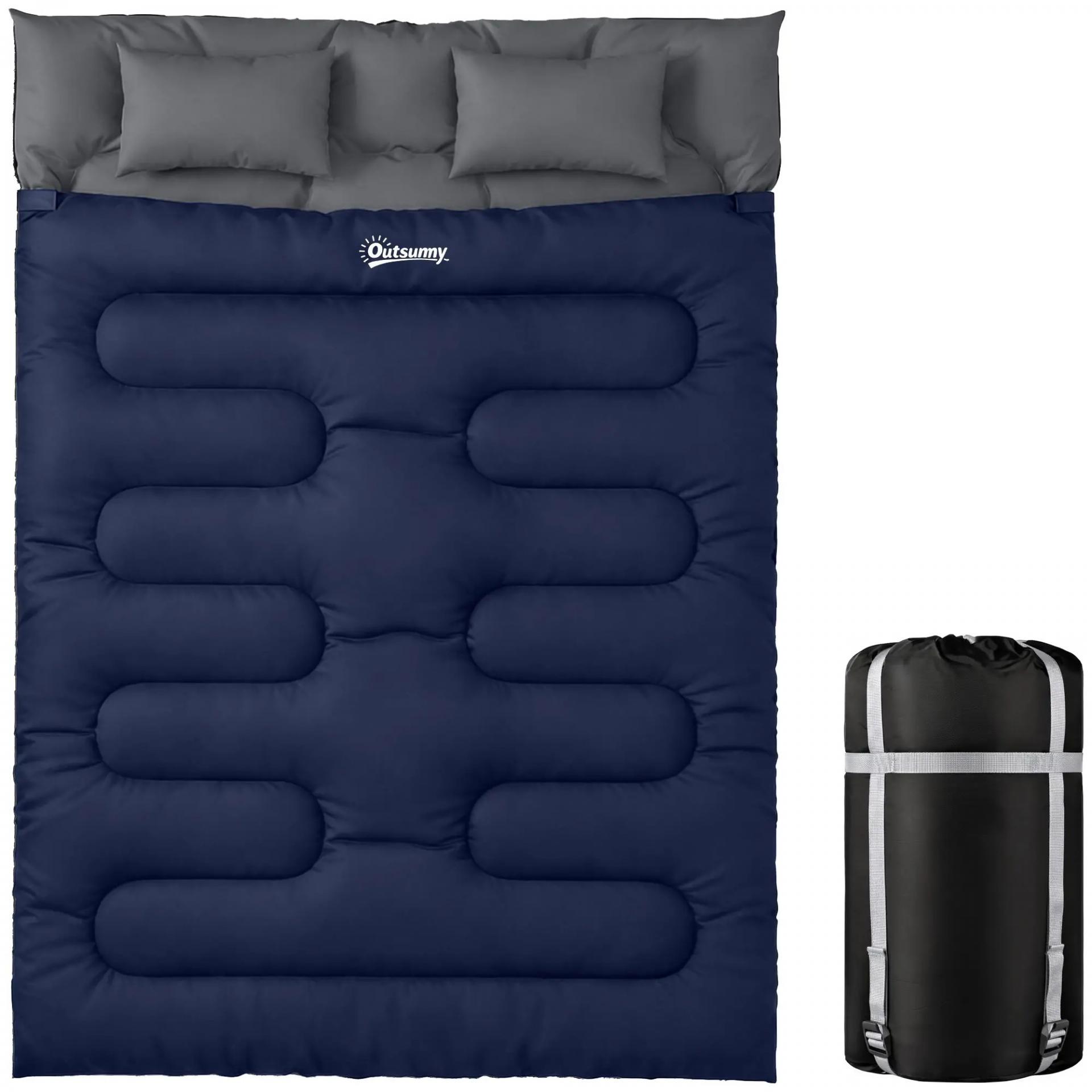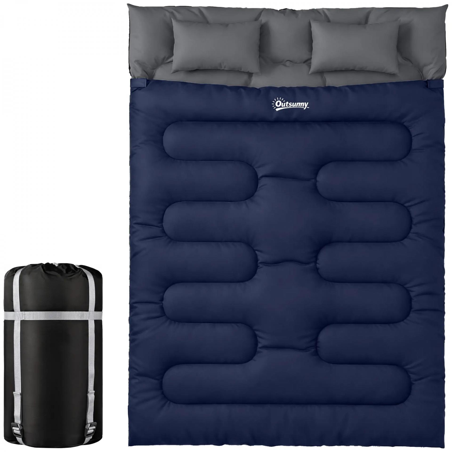 Saco de Dormir Doble para Adultos Tamaño Queen para 2 Personas con 2 Almohadas y Bolsa Transporte Azul Oscuro