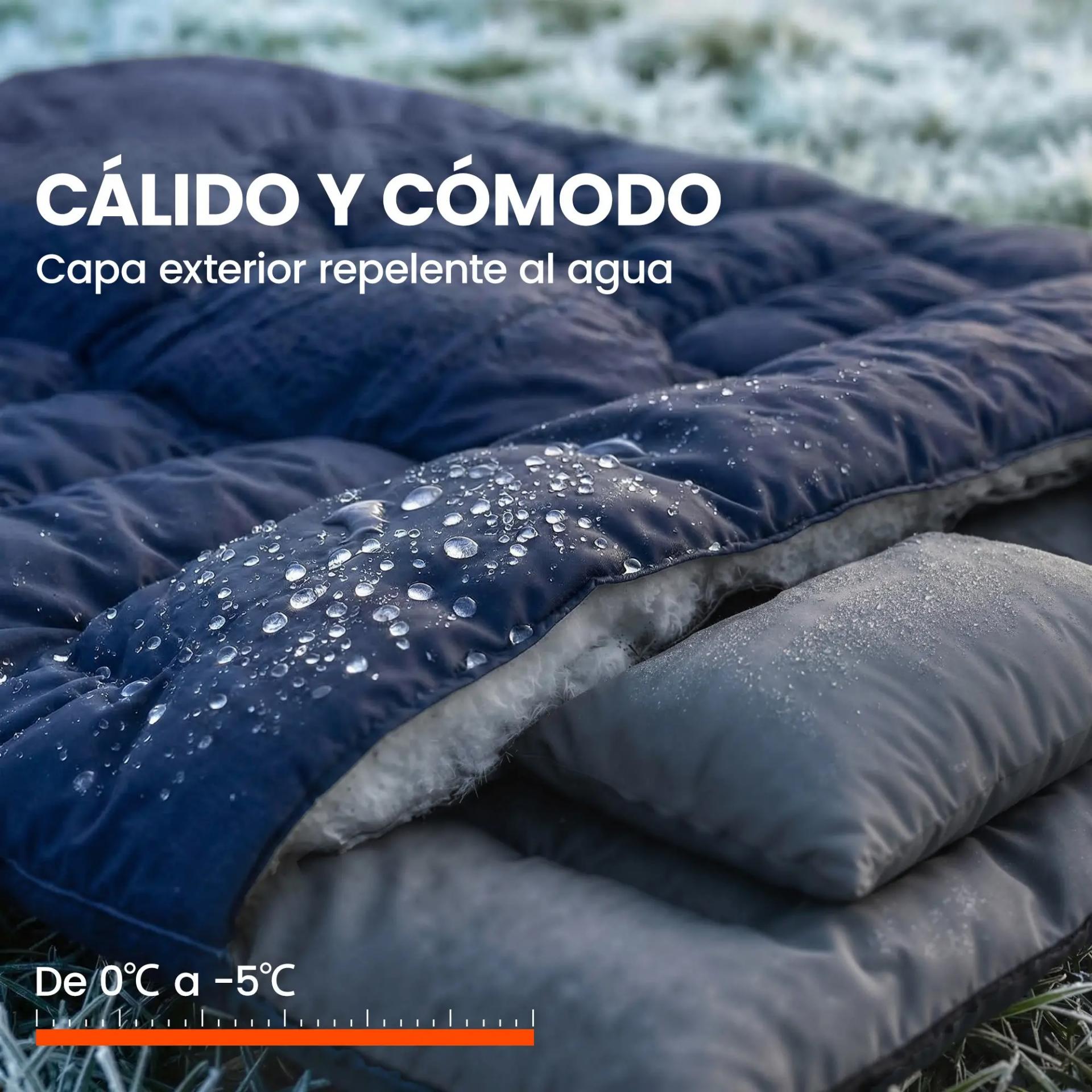 - - CALIDEZ Y COMODIDAD: Con un relleno de 400 g/m² y un forro transpirable, este saco de dormir garantiza comodidad en temperaturas de 0 °C a -5 °C, proporcionando aislamiento del frío y manteniéndote abrigado durante las noches frescas y húmedas