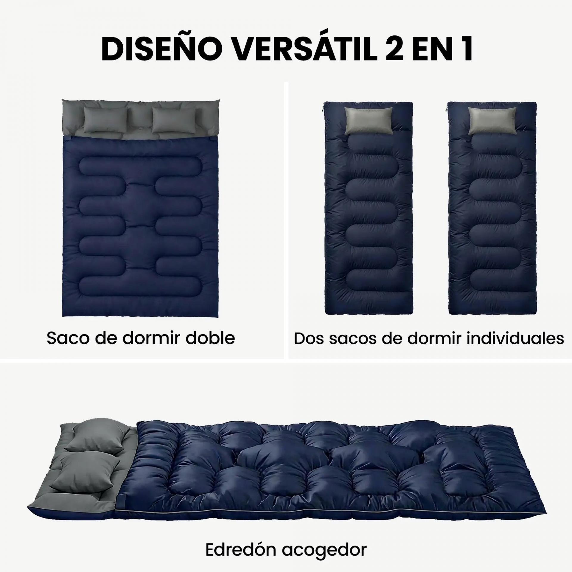 - - SISTEMA LISTO PARA USAR: Este saco de dormir para adultos incluye almohadas suaves de 45x28 cm y una práctica bolsa Oxford, ideal para viajes en caravana, estancias en cabañas o como cama adicional para invitados en casa