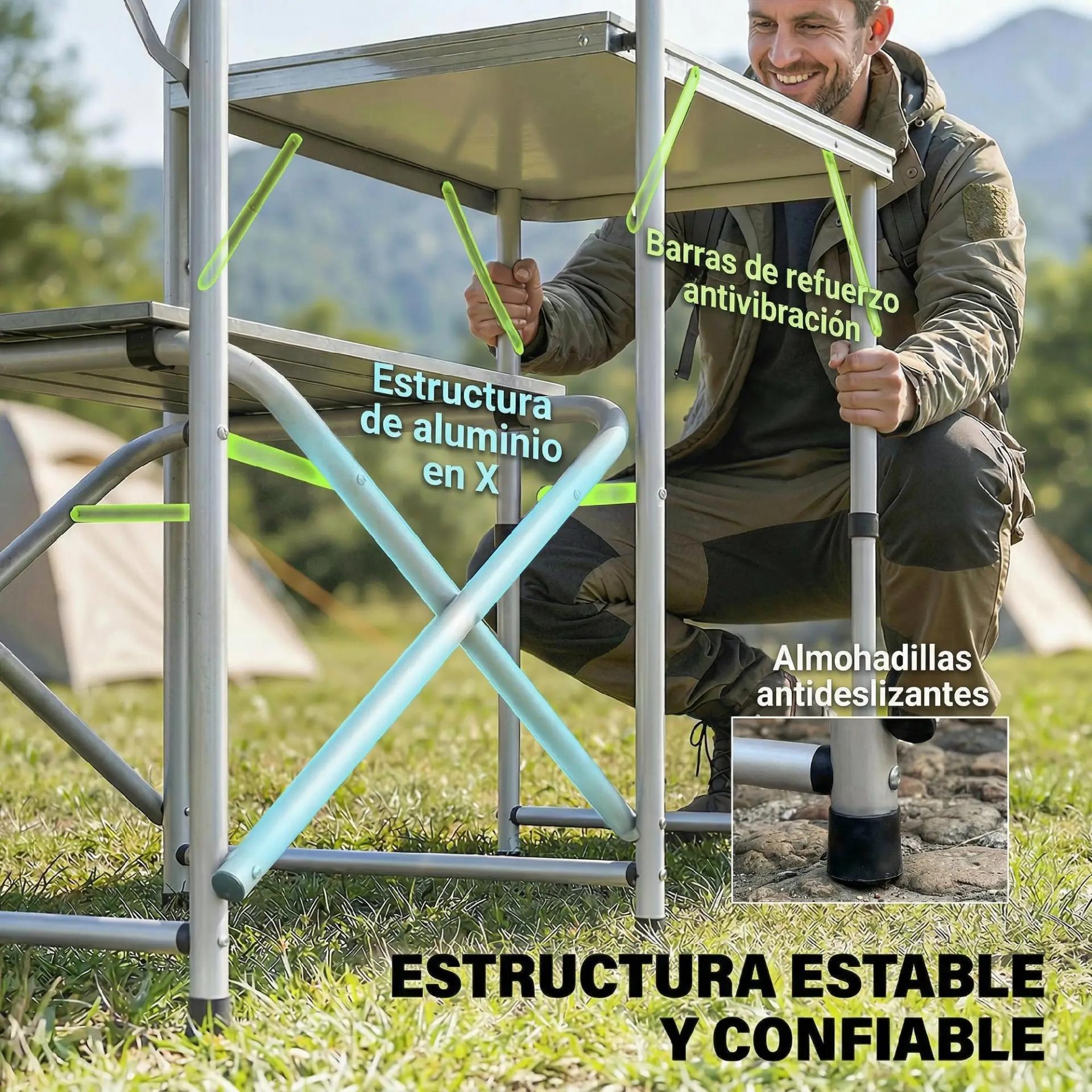 - - SOLUCIÓN VERSÁTIL: Perfecta para viajar en caravana, barbacoas, picnics o noches bajo las estrellas. Nuestra mesa de camping con almacenamiento es ideal para todo tipo de actividades al aire libre