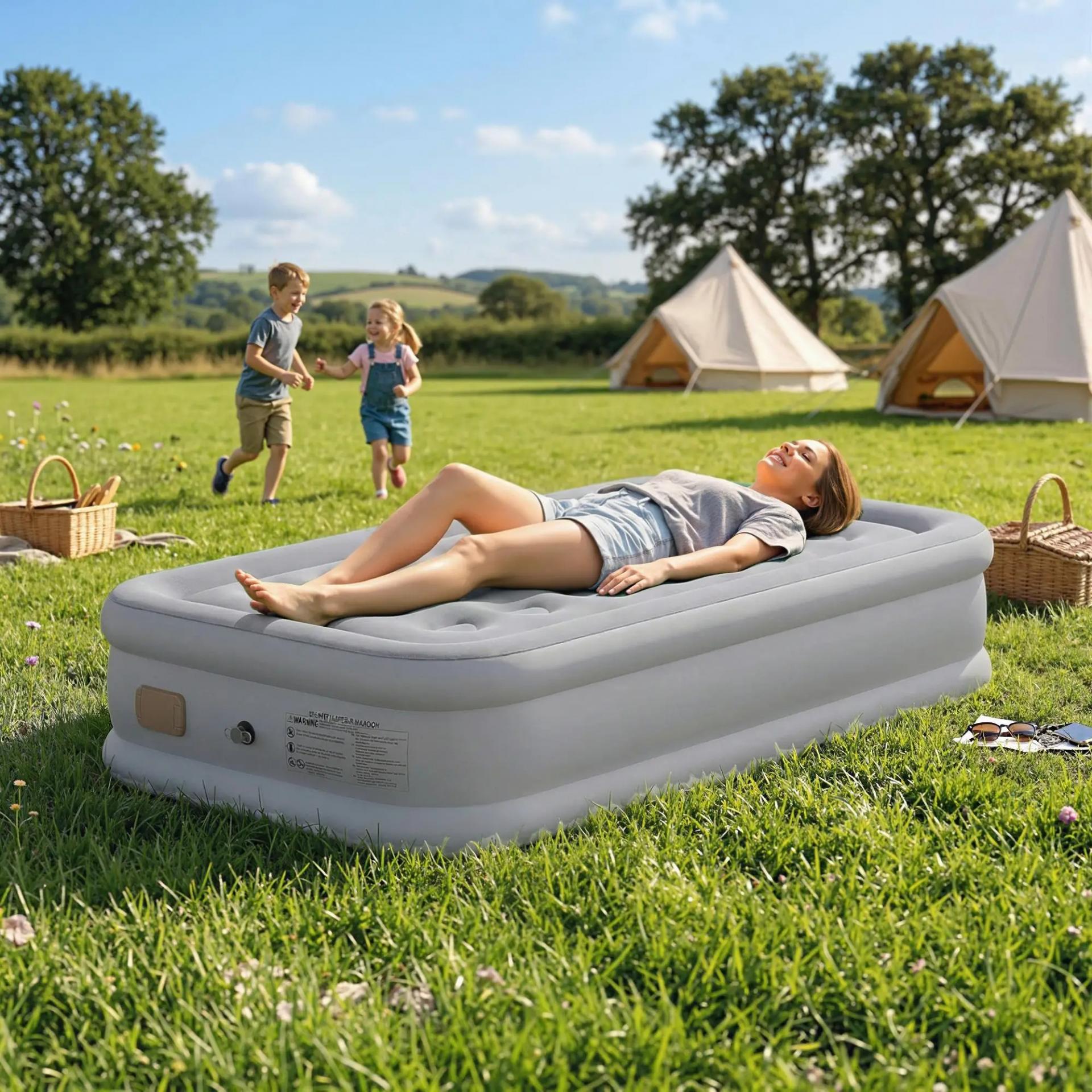 - - SUPERFICIE GRUESA FLOCADA: Suave superficie flocada y material multicapa del colchón hinchable individual garantizan comodidad. Resistencia al agua de 5000 mm y bordes sellados al calor protegen en suelos húmedos