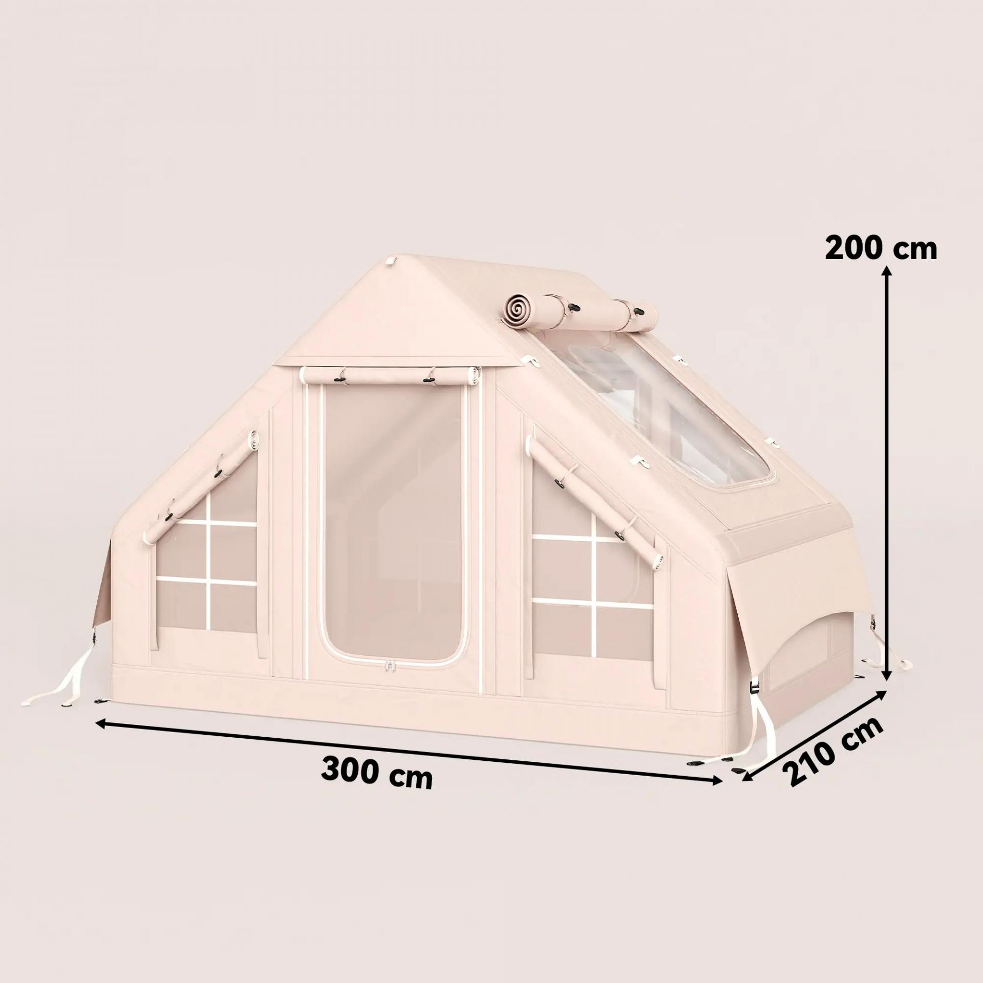 - - MAYOR CONFORT Y LUMINOSIDAD: Equipada con 7 ventanas y tragaluz superior, esta tienda inflable proporciona ventilación cruzada, entrada de luz natural y una sensación de amplitud, creando un ambiente más agradable para descansar o pasar tiempo en el interior