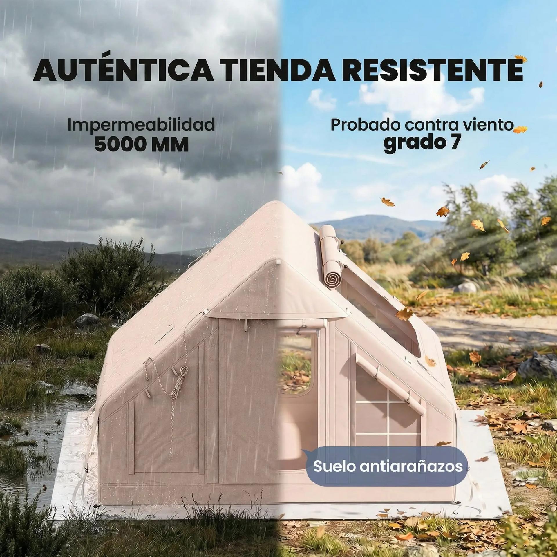 - MONTAJE RÁPIDO SIN COMPLICACIONES: Esta tienda de campaña hinchable se monta en 3 minutos gracias a su estructura inflable integrada, sin necesidad de varillas, facilitando un montaje rápido, cómodo y sin esfuerzo incluso para usuarios sin experiencia