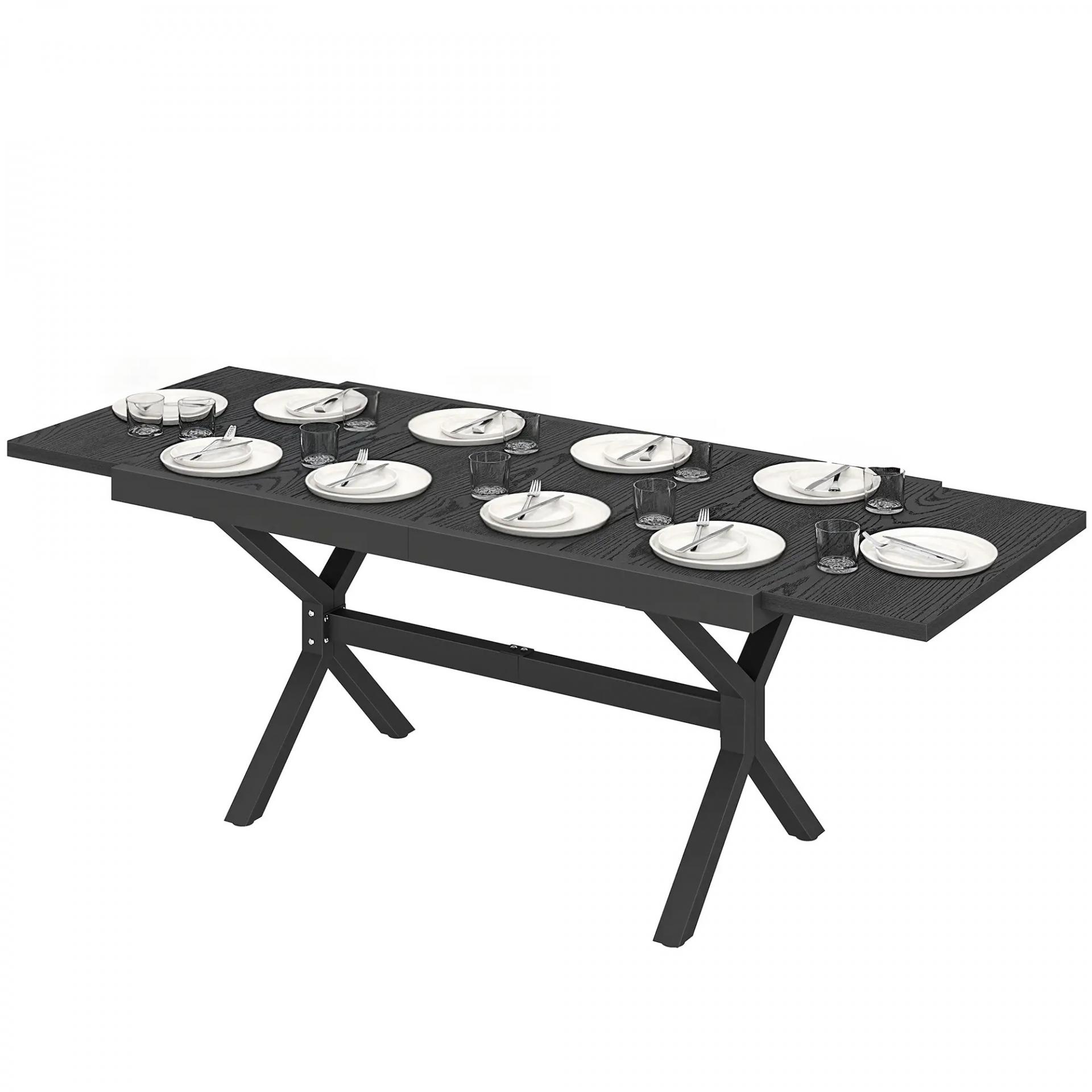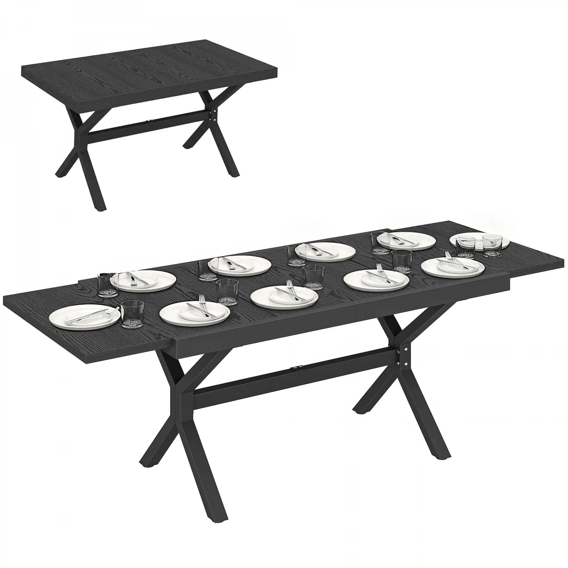 Mesa de Comedor Exterior Extensible 154/214 cm para 8-10 Personas de Aluminio Acero con Tapa Imitación Madera Gris