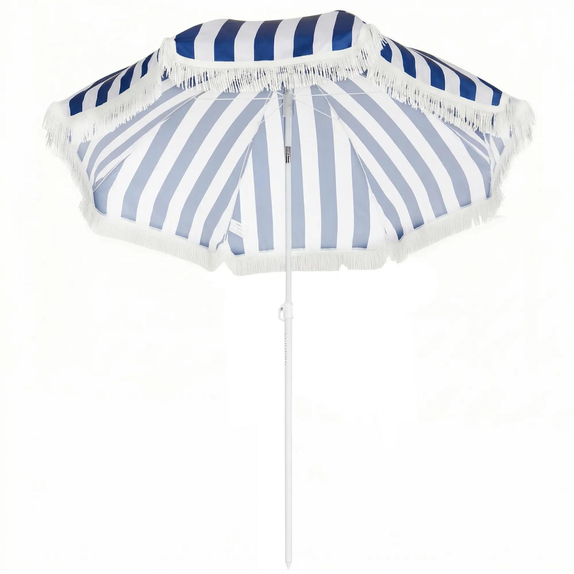 Sombrilla de Playa con Flecos Ø180 cm Sombrilla de Terraza Exterior con Altura Ajustable Inclinación 30° Azul y Blanco