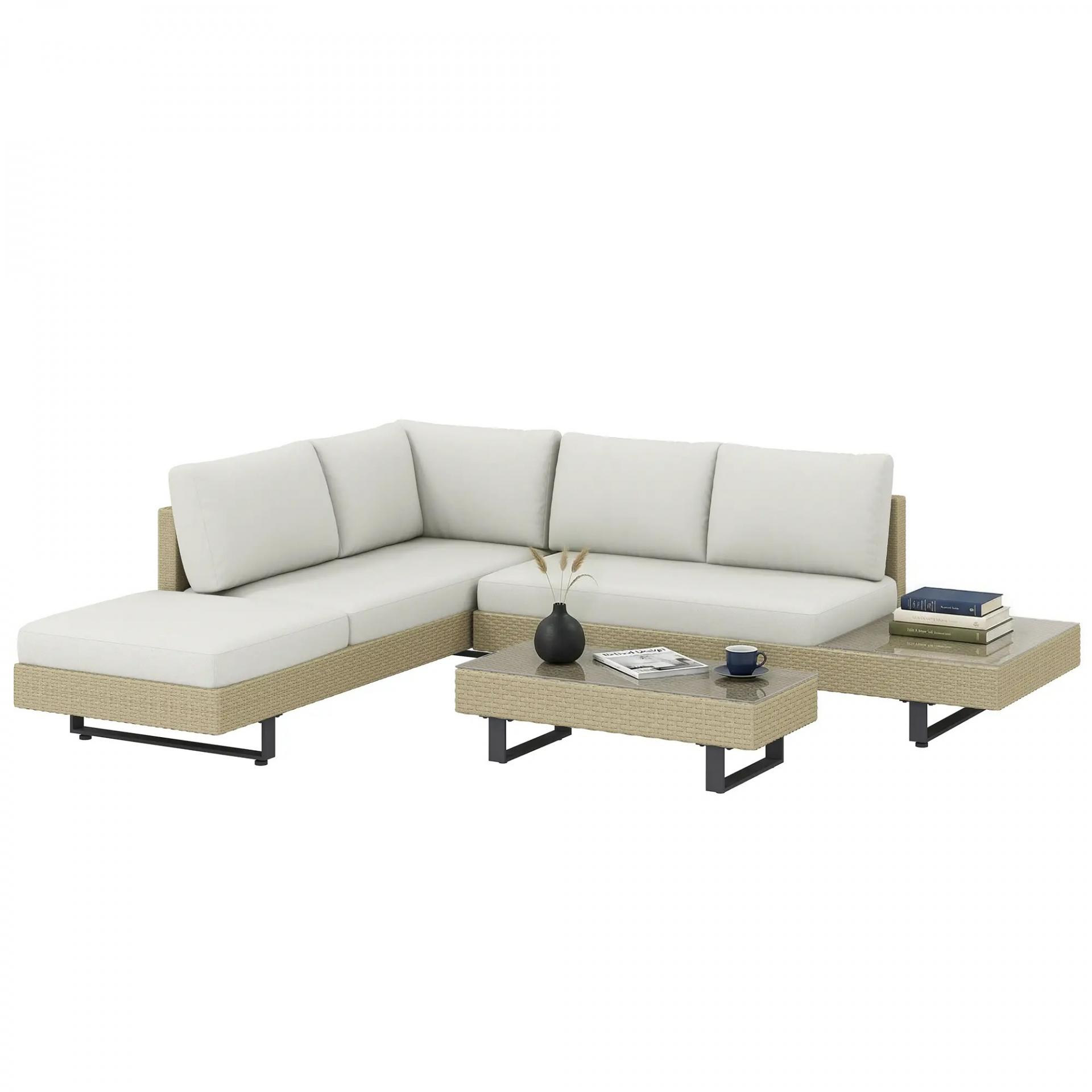 - DISEÑO MODULAR PARA ADAPTAR TU ESPACIO: Este conjunto de muebles de jardín de ratán incluye sofá de 3 plazas, sofá de 2 plazas con mesa lateral integrada y mesa de centro, permitiendo diferentes configuraciones según tu terraza o jardín