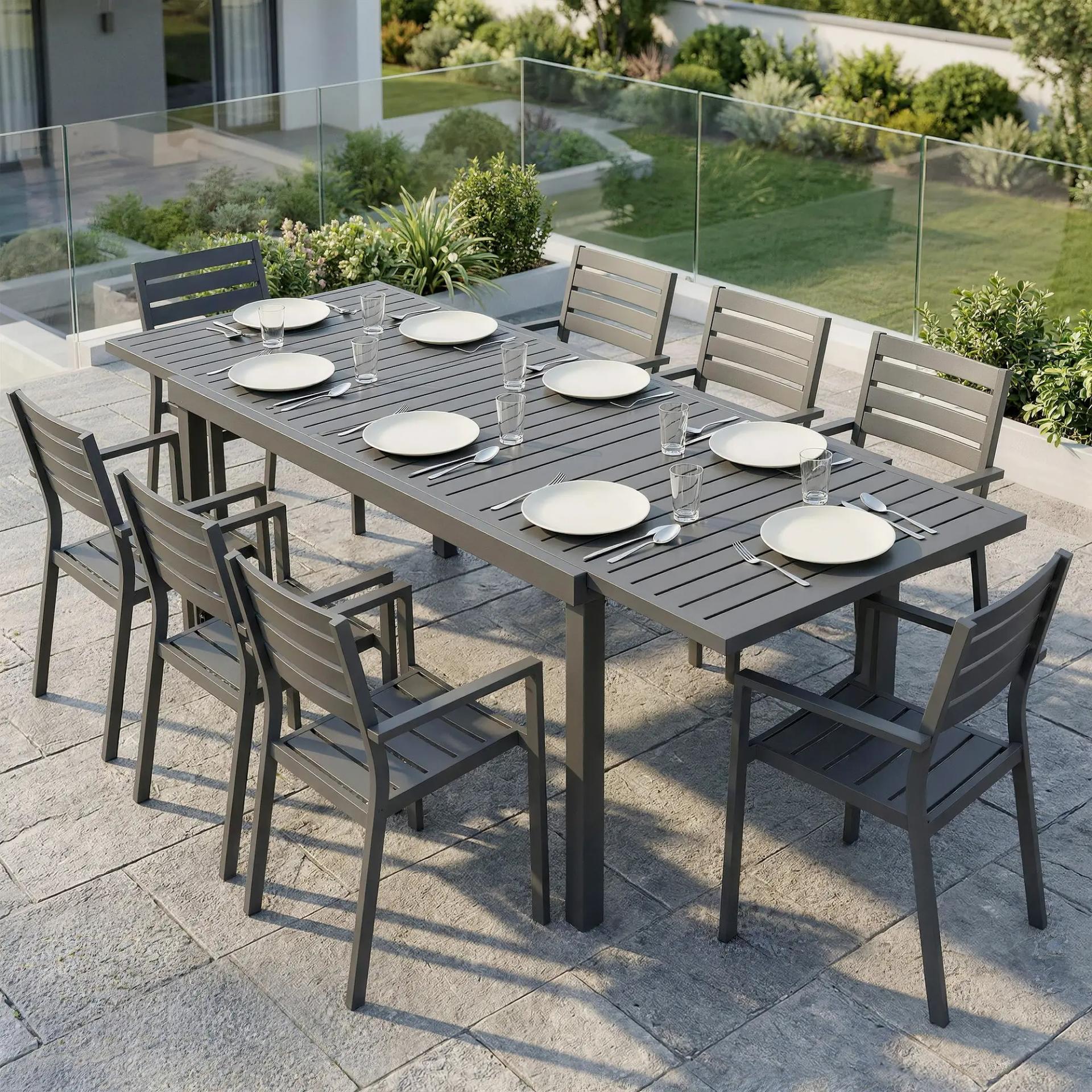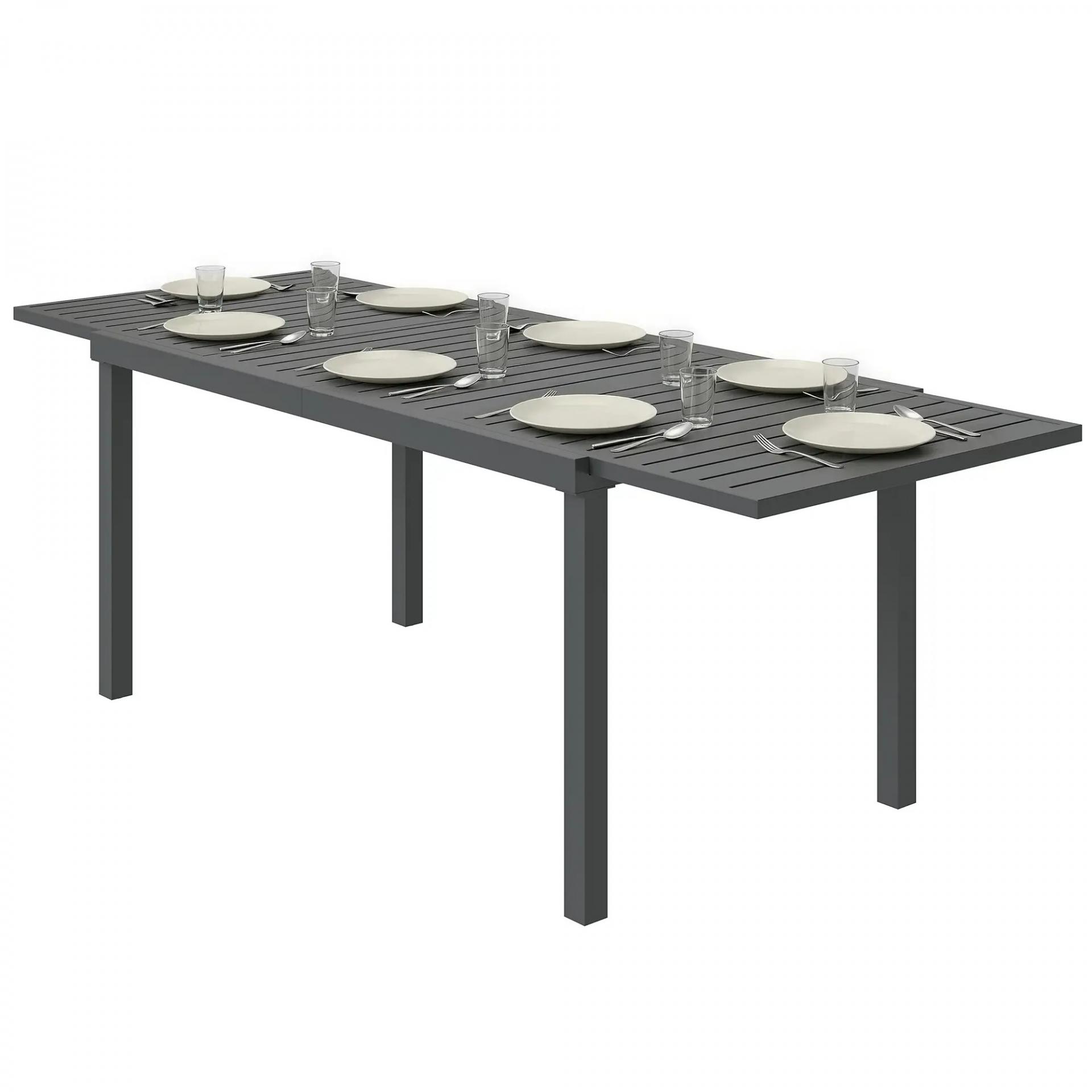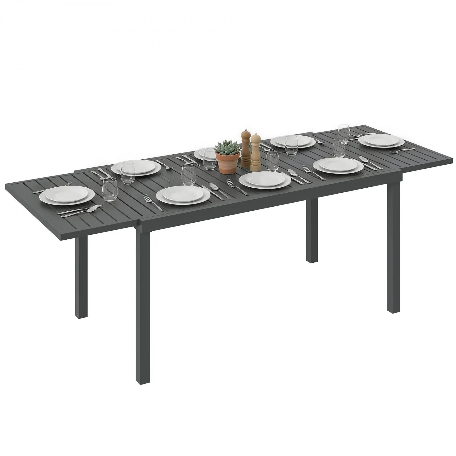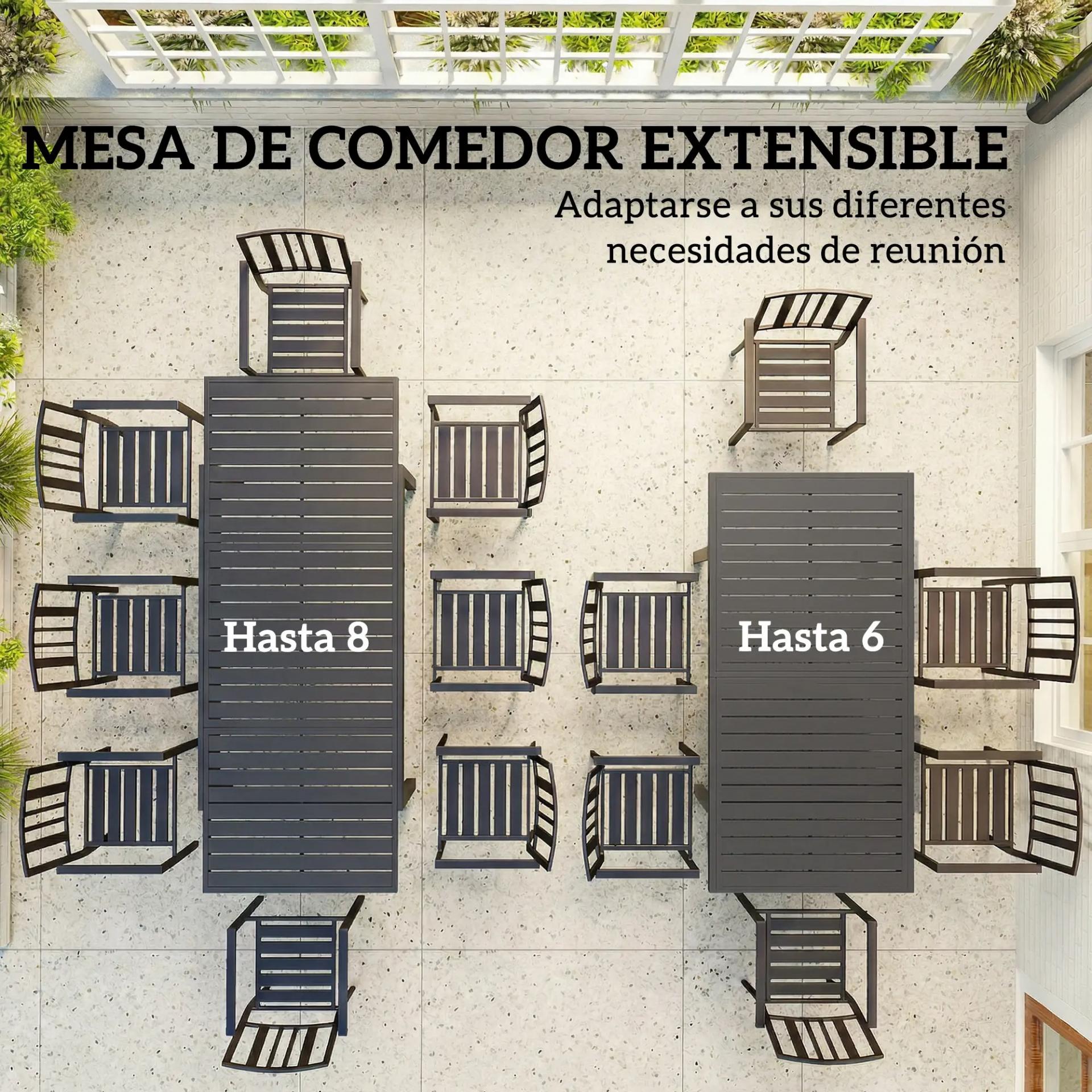Mesa de Jardín Extensible 150/225x85x75 cm Mesa de Comedor de Aluminio con Tablero de Listones para 6-8 Personas Gris